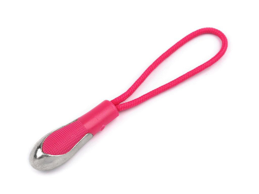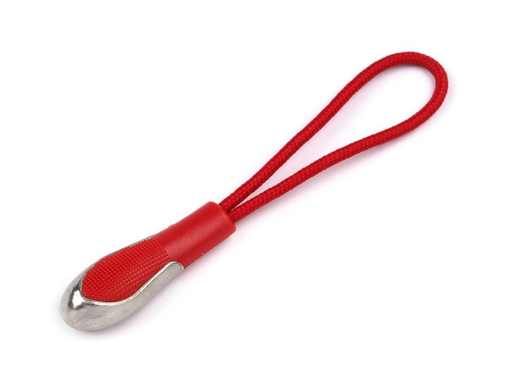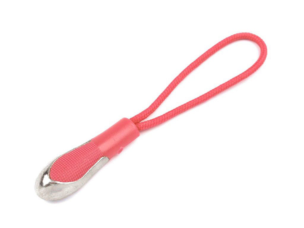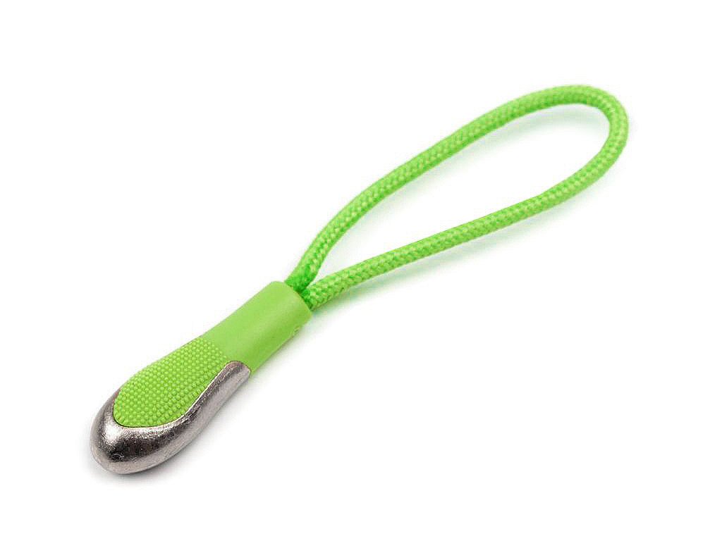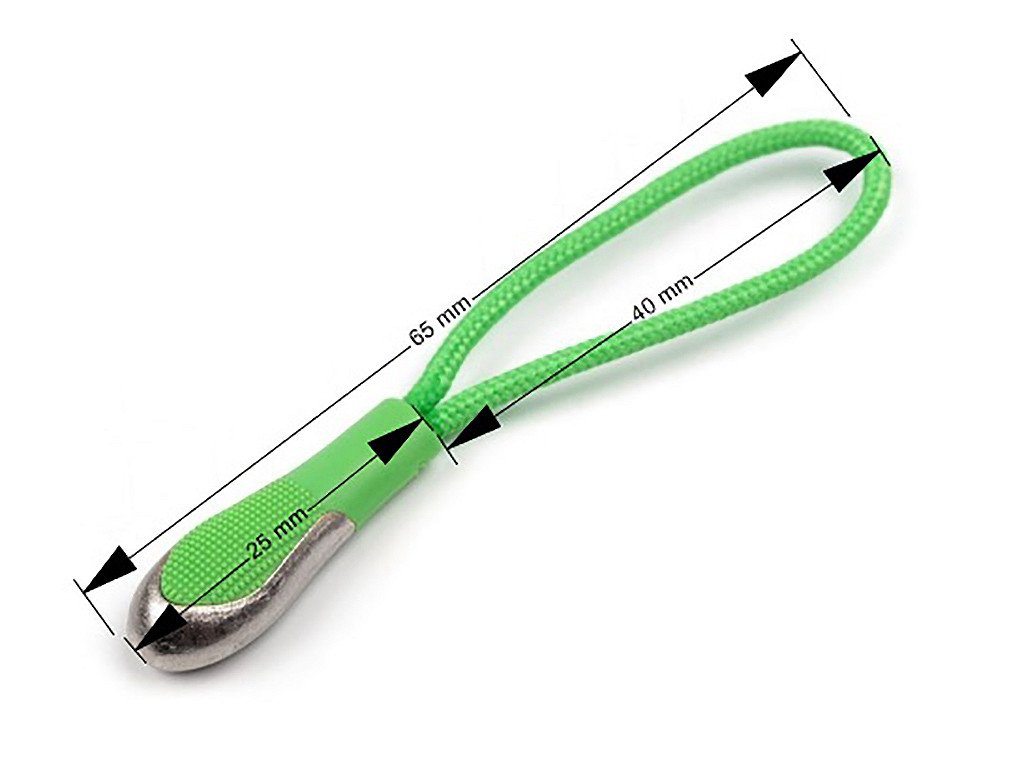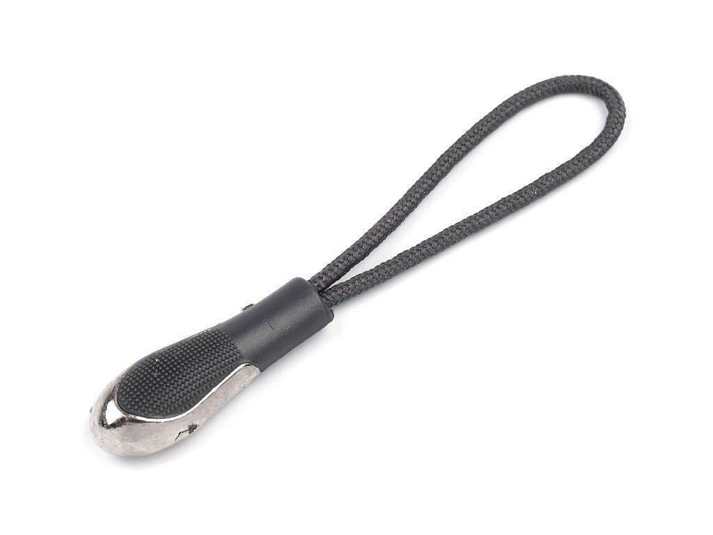 Poutko moderního designu slouží k lepšímu uchycení jezdce na zipu. Tvoří ho táhlo v podobě kapky s kovovým lemem na spodním okraji a polyesterová šňůrka. Díky zajímavému dekoru navíc plní funkci i ozdobného přívěsku. Můžete ho proto pověsit také na klíče, mobil, kabelku, atd. Rozměry plastové části jsou 9 x 25 mm.- Celková délka: 65 mm