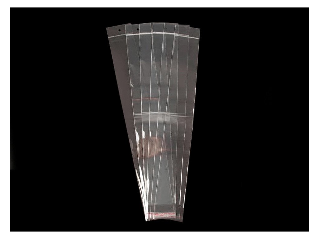 Dlouhé sáčky jsou vhodné především pro zabalení náhrdelníků, úzkých kravat apod. Jejich lesklý a hladký povrch ocení převážně zákazníci, kteří uvítají dobrou viditelnost zabaleného výrobku. Z jedné strany jsou sáčky opatřené lepicí lištou, díky které je snadno zalepíte i rozlepíte, a z druhé strany závěsem, abyste je mohli snadno zavěsit na viditelné místo. Sáčky vaše výrobky ochrání před poškrábáním, nánosem prachu, vzduchem atd.- Rozměry: 7 x 45 cm