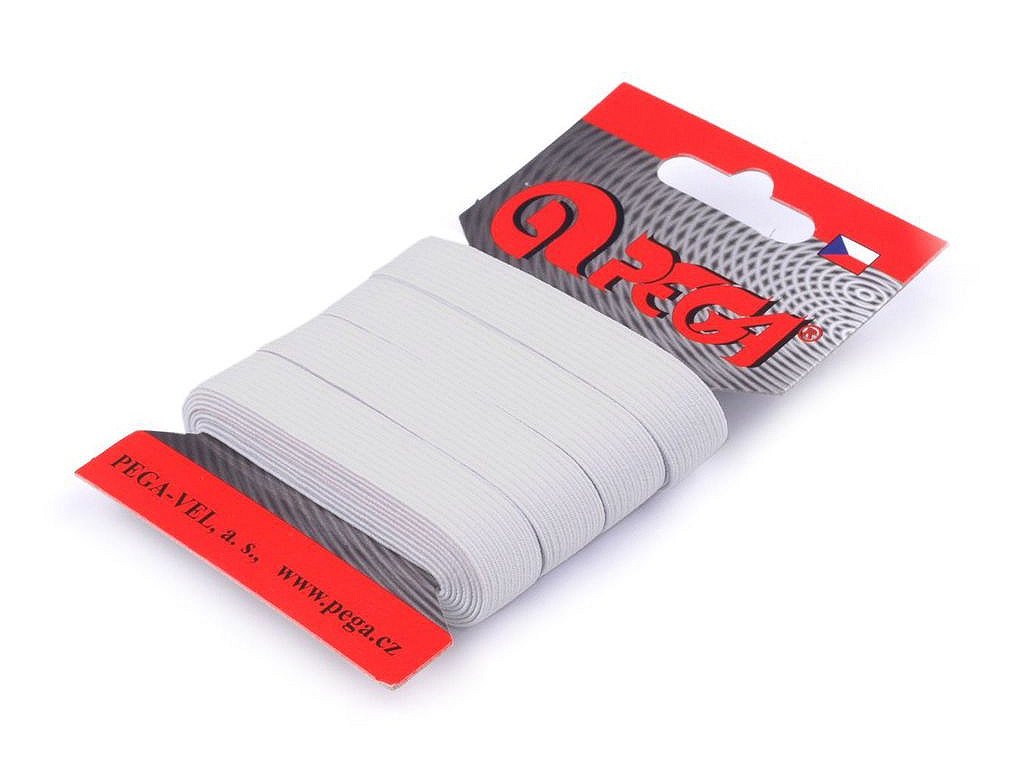 Kvalitní český výrobek. Klasická prádlová guma, široká 12 mm. Jedna karta obsahuje 5 m pruženky. Výrobce uvádí šíři 11,9 mm, my ji máme zaokrouhlenou a nakódovanou na 12 mm. Pruženka je pevná v tahu.- Šíře: 12 mm