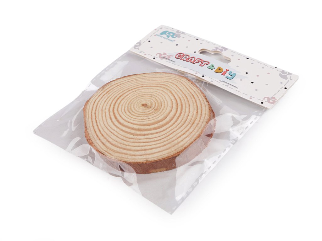 Dřevěné přírodní kolečko se hodí k dalšímu dotvoření. Je z obou stran rovné, po obvodu má kůru. Není barvené ani lakované, každý kus se může lišit jak barvou, tak kresbou dřeva, velikostí i tloušťkou. Kolečko je vhodné pro další tvoření, bude např. krásným malým podtáckem. K ozdobení můžete využít techniku malby, decoupage, lakování apod. V jednom sáčku je 1 kolečko.- Průměr: cca 9 cm