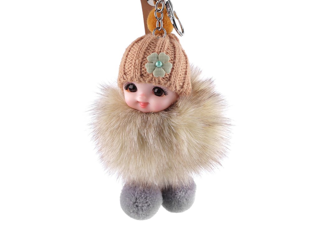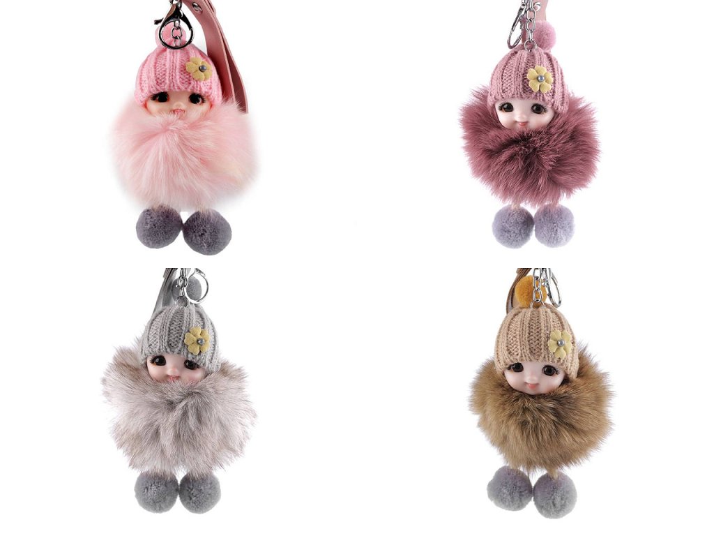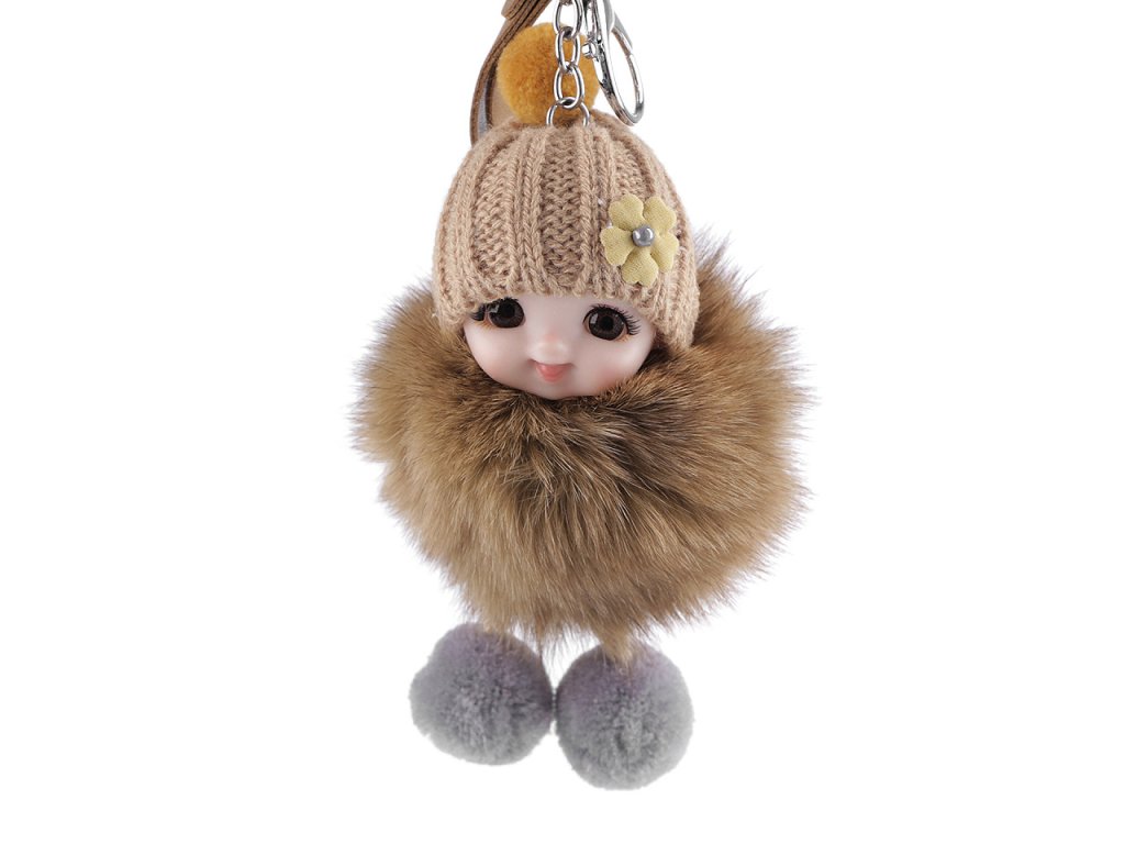 Přívěsek panenky s bambulí z pravé kožešiny se bude hodit jako doplněk na školní batoh, tašku či klíče. Panenka má hezky zpracované detaily. Díky kožešiny je přívěsek příjemně hebký, doslova vás bude nutit k neustálým dotekům. Panenka je zavěšená na řetízku, ke kterému je připojený plochý kroužek na klíče s poutkem do ruky a otevírací karabina. Upozorňujeme zákazníky, že panenka se může v některých detailech lišit. Děkujeme za pochopení.- Rozměry: 8 x 15 cm