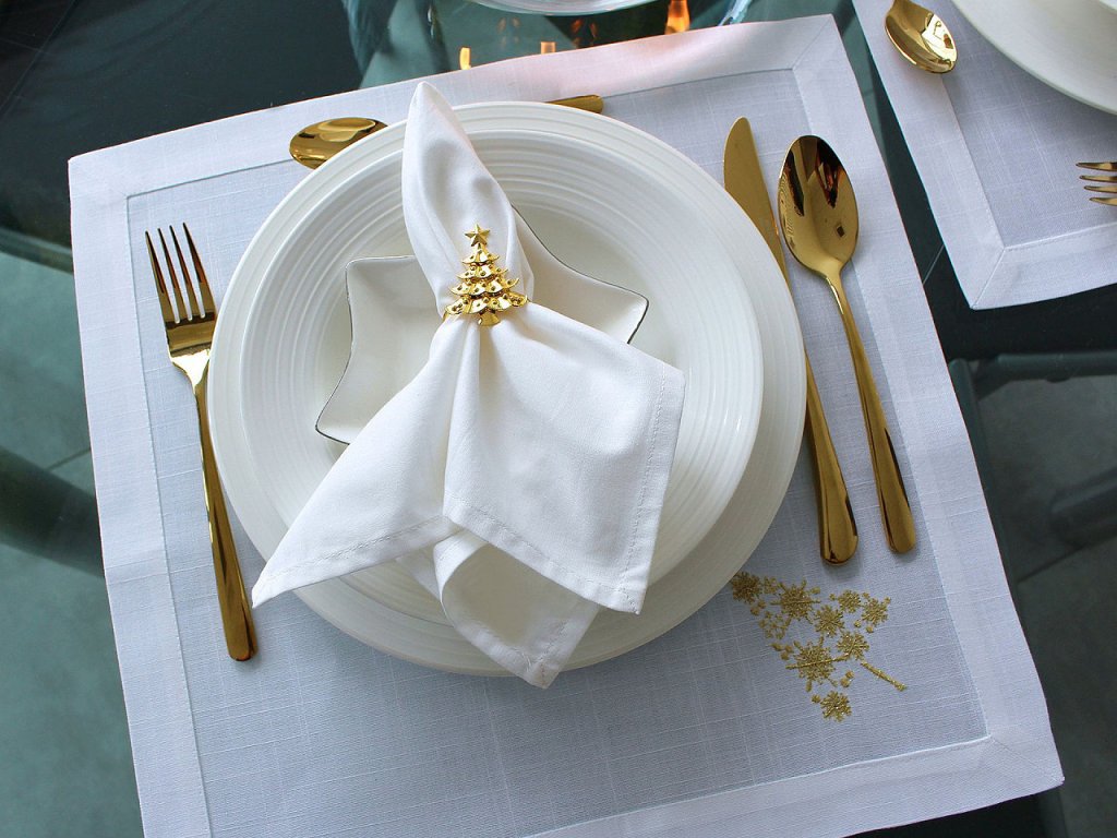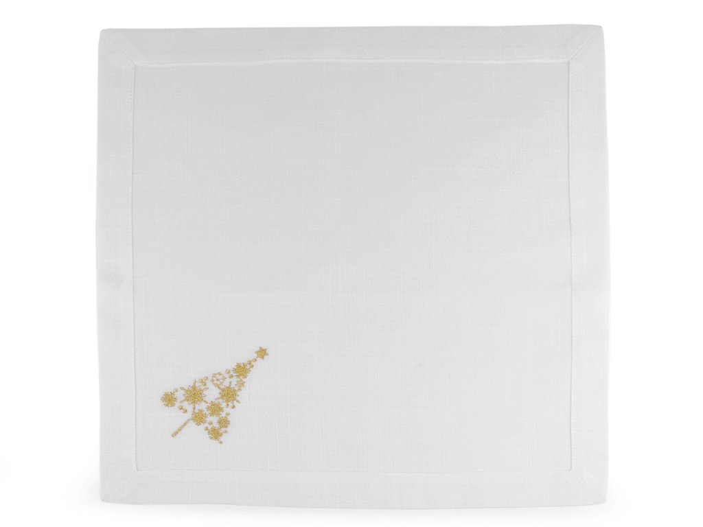 Stylové vánoční prostírání zdobí zlatá lurexová výšivka stromečku. Prostírání slavnostně doladí vaši domácnost, hodí se do tradičního i moderního stylu interiéru. Je jednostranné, s pevným, širokým okrajem. Chrání stůl před skvrnami a poškrábáním. Prostírání je i skvělým dárkem pro vaše blízké, kteří si potrpí na kvalitní a estetické doplňky do domácnosti.- Rozměry: 42 x 42 cm