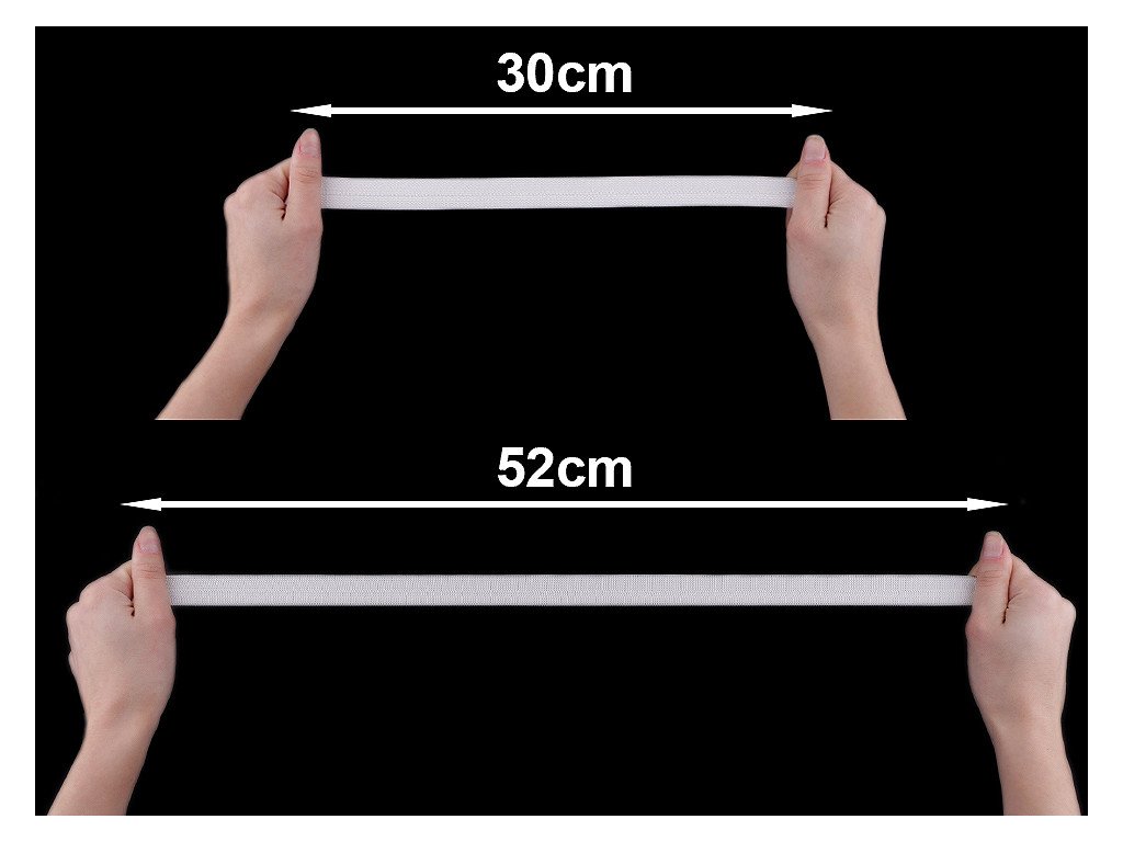 Hladká pruženka je elastická (tažná), po roztažení se vrátí zpět do původního stavu. Je pevná v tahu. Použití: Pruženku můžete vložit do oděvů do pasu nebo pod prsy, aby vám lépe držel na daném místě, např. do kalhot, šatů, bund apod. Využijete ji také na sukýnky.- Šíře: 20 mm