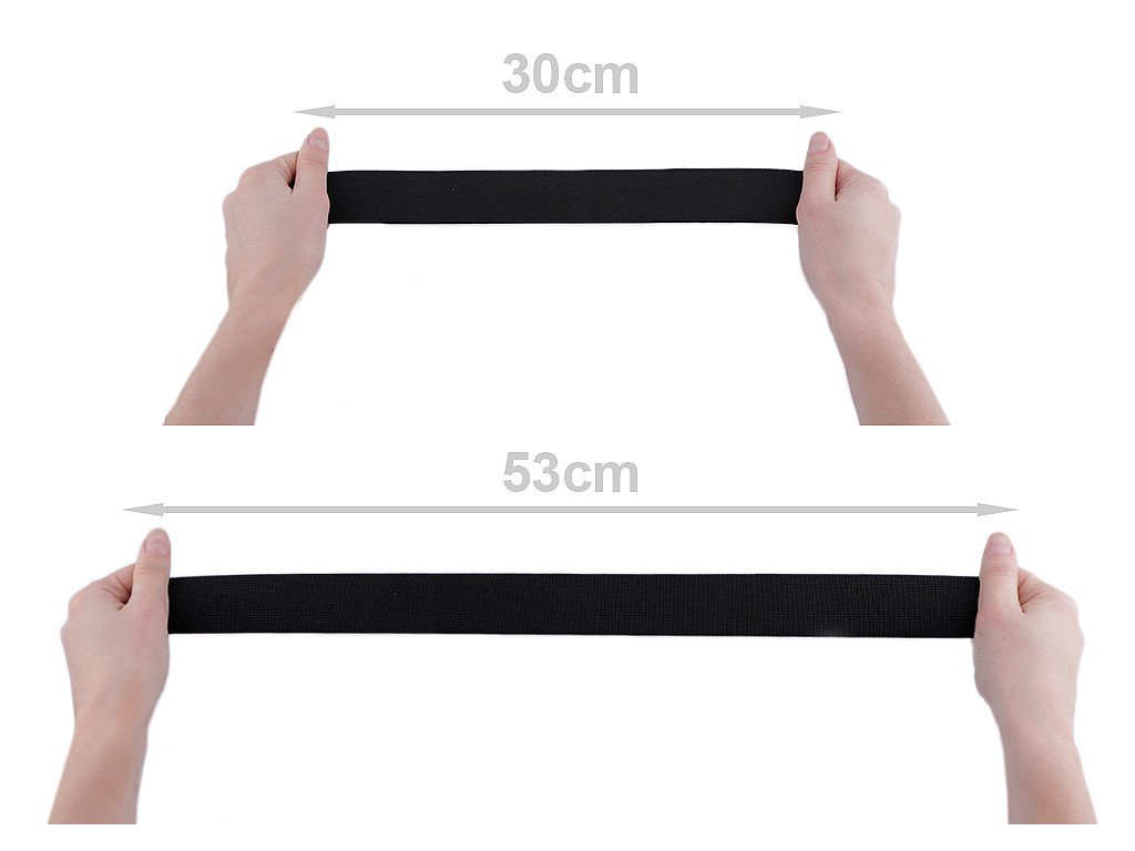 Hladká pruženka je elastická (tažná), po roztažení se vrátí zpět do původního stavu. Použití: Pruženku můžete vložit do oděvů do pasu nebo pod prsy, aby vám lépe držel na daném místě, např. do kalhot, šatů, bund apod.- Šíře: 40 mm