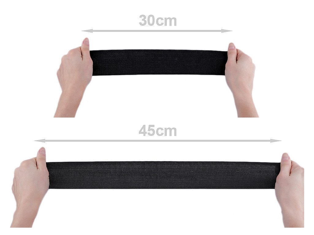 Široká hladká pruženka je vhodná k našití do pasu oděvů (kalhot, sukní). Je pevná v tahu.- Šíře: 60 mm