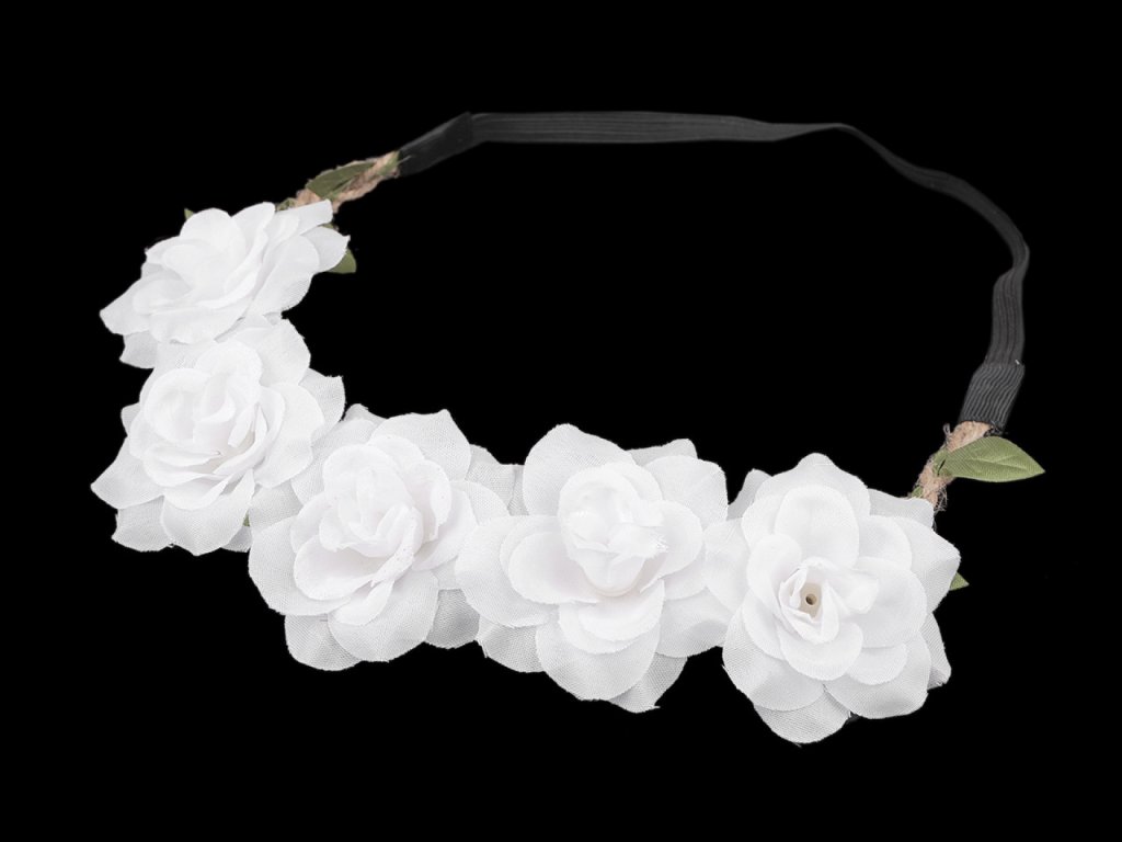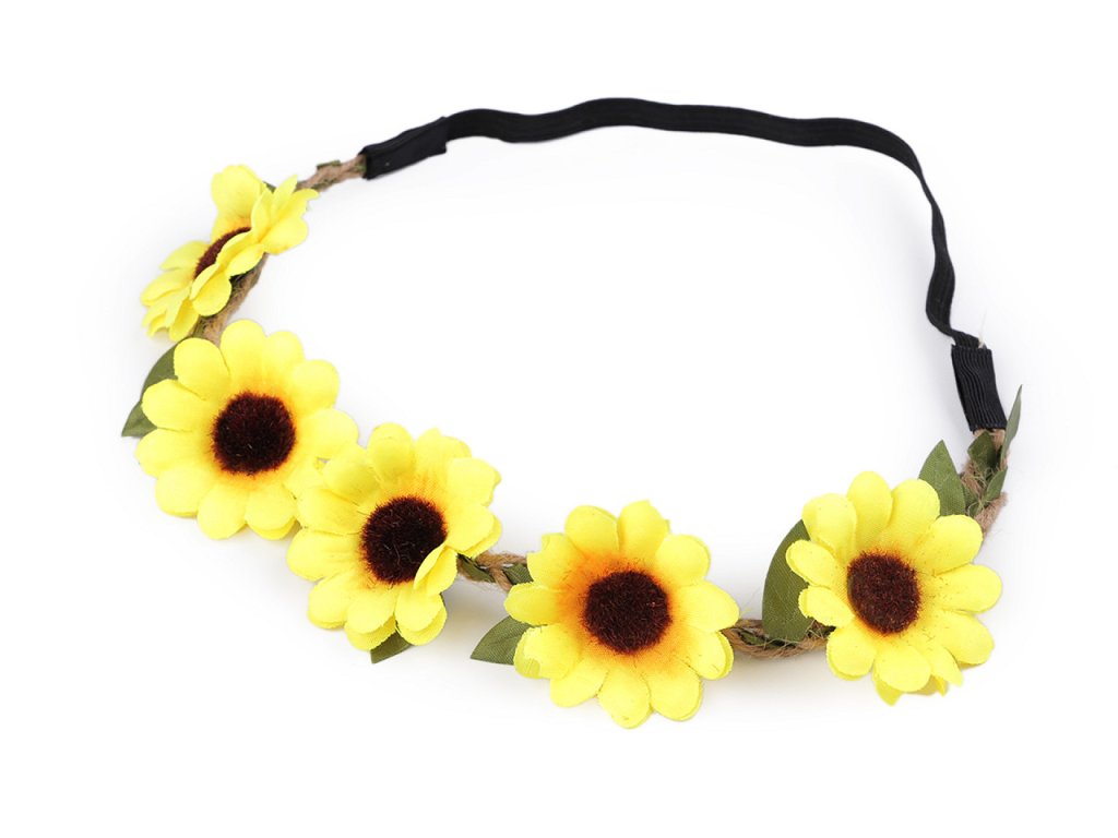 Čelenka s romantickými kvítky skvěle ozdobí váš účes. Květy jsou připevněné k copánku z voskovaných šňůrek. Do copánku je vpletený prýmek s lístečky. Zadní část tvoří pružná guma. Díky ní čelenka pevně drží a nepadá, je velice příjemná na nošení. Čelenka vypadá skvěle v rozpuštěných i zapletených vlasech. Využijí ji i dívky, které čeká První svaté přijímání, neměla by chybět v účesu žádné družičky. Celkový obvod čelenky je 50 cm v nenataženém stavu.- Obvod: 50 - 64 cm