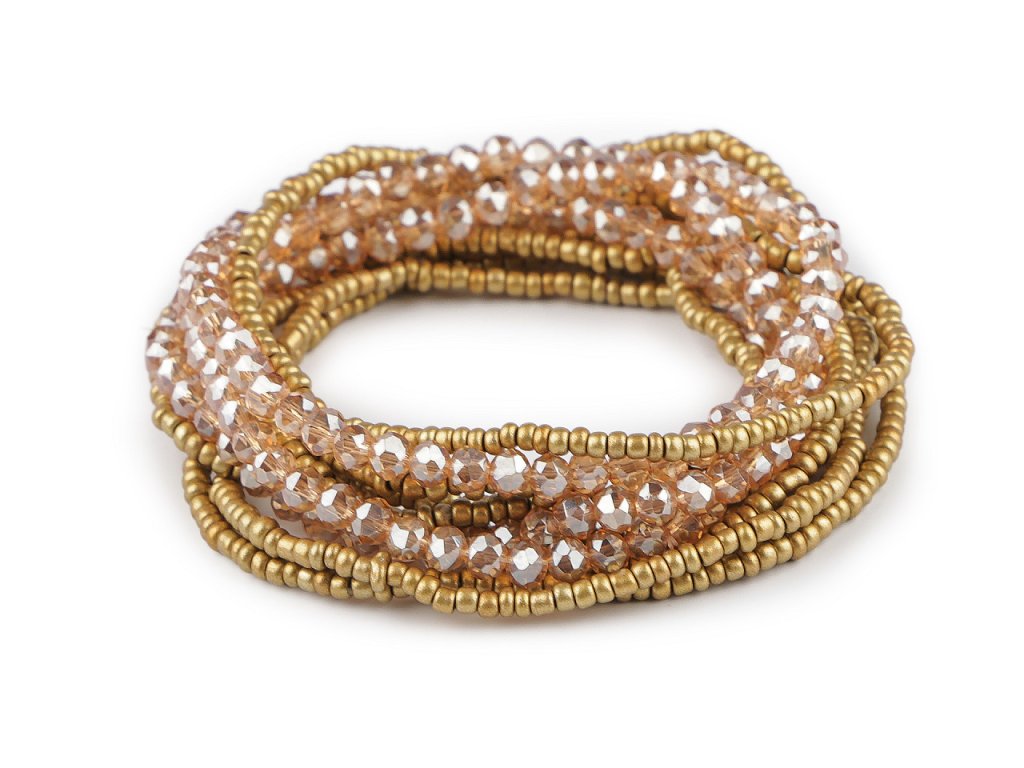 Pružné náramky z rokajlu a broušených korálků sada 10 ks