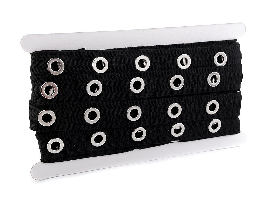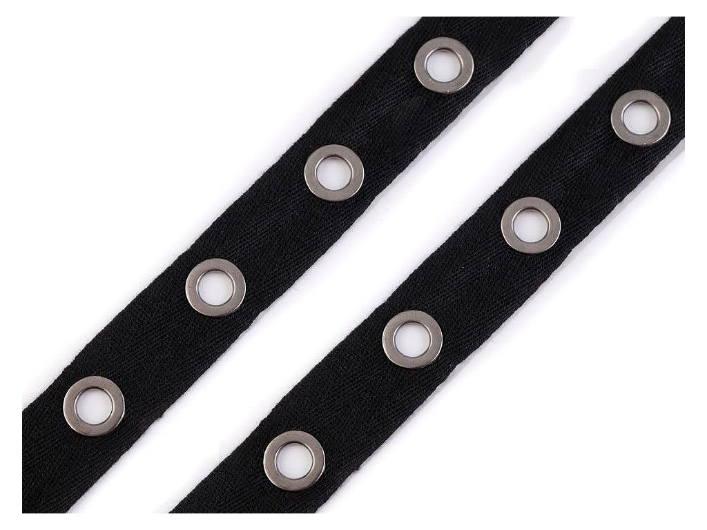 Stuha s průchodkami je zajímavým a praktickým doplňkem v oděvním průmyslu. Díky šněrovací stuze bude váš oděv krásnější. Použití: Stuha s průchodkami slouží ke zdobení oděvů. Nejčastěji se využívá ke šněrování či lemování šatů, korzetů, kalhot, podvazkových pásů, bot a dalších módních doplňků. Jednotlivé průchodky jsou od sebe vzdálené cca 24 mm (měřeno od okraje k okraji průchodek).- Šíře: 24 mm