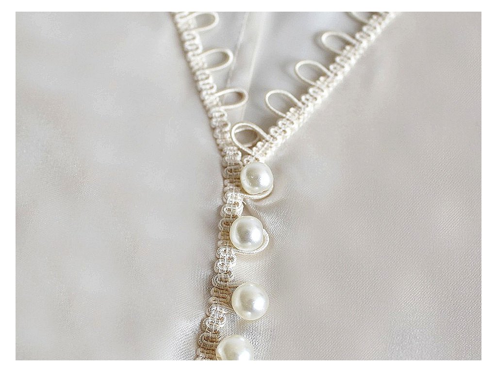 Prýmek s pružnými očky je ideální jako zapínání na perlové knoflíky. Prýmek je pevný, očka jsou pružná, na průměry knoflíků 6 - 11 mm. Použití: Prýmek je vhodný na svatební i společenské šaty, halenky, svetry apod. Využijete jej i v technice háčkování, je skvělý pomocník na připojení podšívky. Přišije se na horní okraj podšívky a očka se sháčkují dohromady s přízí.- Šíře: 15 mm