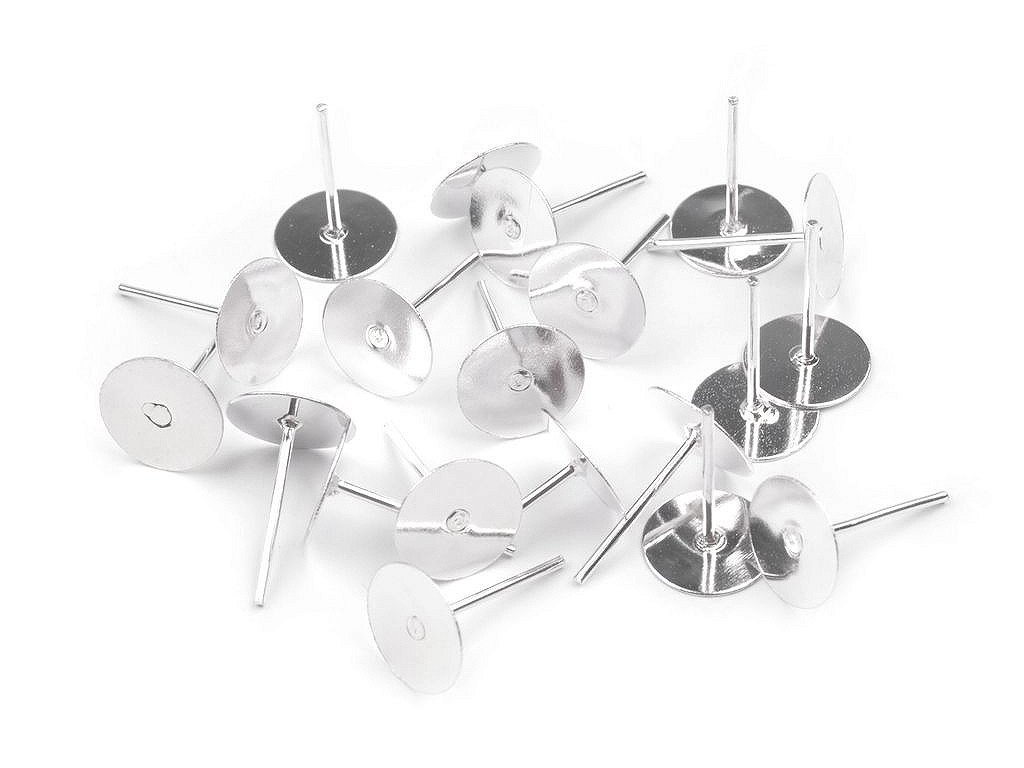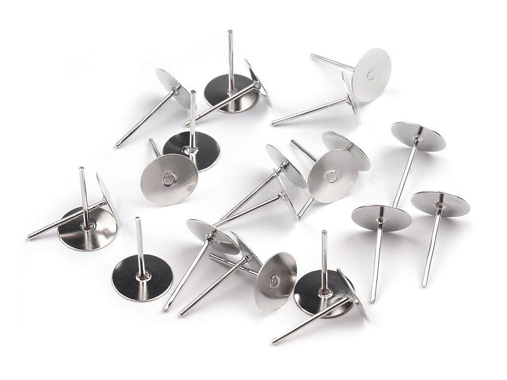 Náušnicové puzety z magnetického kovu mají plošku, která slouží k nalepení kabošonu, perly, půlperle či plochého korálku. Využít můžete i drobné textilní květy, mašličky, fimo, růžičky a jiné ozdoby. Tyto puzety jsou perfektním řešením pro výrobu vlastních náušnic, jsou vhodné pro amatérské i profesionální šperkaře, poskytují flexibilitu a jednoduchost při designování. Na dříku mají zářez na umístění zarážky, která zabrání vypadnutí náušnice z ucha.- Průměr: 8 mm