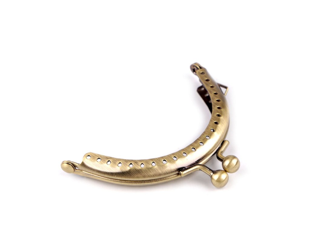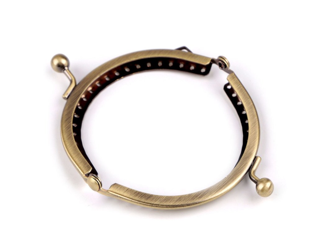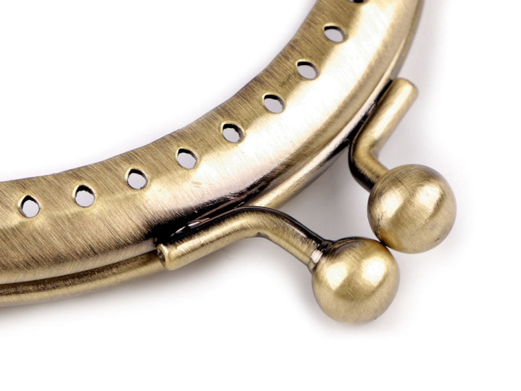 Kovový rámeček je vhodný na výrobu malé peněženky. Je určený k našití, kdy se látka dovnitř vloží a ručně přešije přes dírky, jejichž rozpětí je 5 mm. Dírky jsou jen na vnější straně rámečku, která je delší než vnitřní, tudíž je našívání jednodušší. Vnitřní rozměry rozvoru jsou 7 x 7,3 cm. Vnější rozměry rozvoru jsou 8 x 8,5 cm. Výška zavřeného rámečku je 4,5 cm (včetně zapínání 6 cm).- Zavřený rámeček: 8 x 6 cm