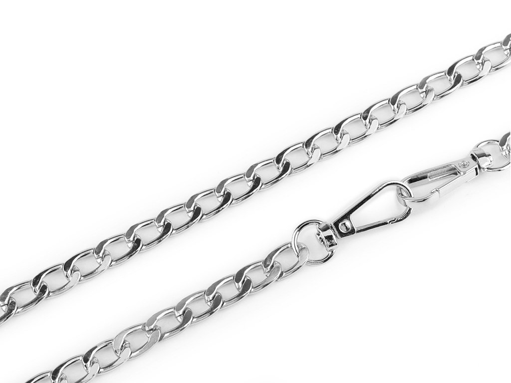 Kovový řetízek využijete na menší kabelky, psaníčka a pouzdra na mobilní telefony. Na obou jeho koncích najdete připevněné karabinky. Řetízek není určený na velkou zátěž.- Šířka: 9 mm