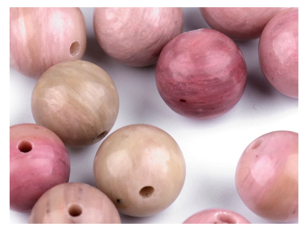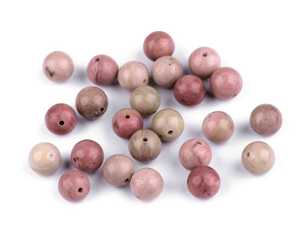 Minerální korálky z rodonitu jsou oblíbené především šperkaři pro svou jedinečnou barvu. Svou velikostí jsou ideální na výrobu Buddhových náramků. Jsou oblíbené na techniku drátování, v kombinaci s drahými kovy, ale i s obyčejnými drátky. Skvěle vypadají i na jednoduchých návlekových šňůrách, které zajímavě ozvláštní.- Průměr: 8 mm