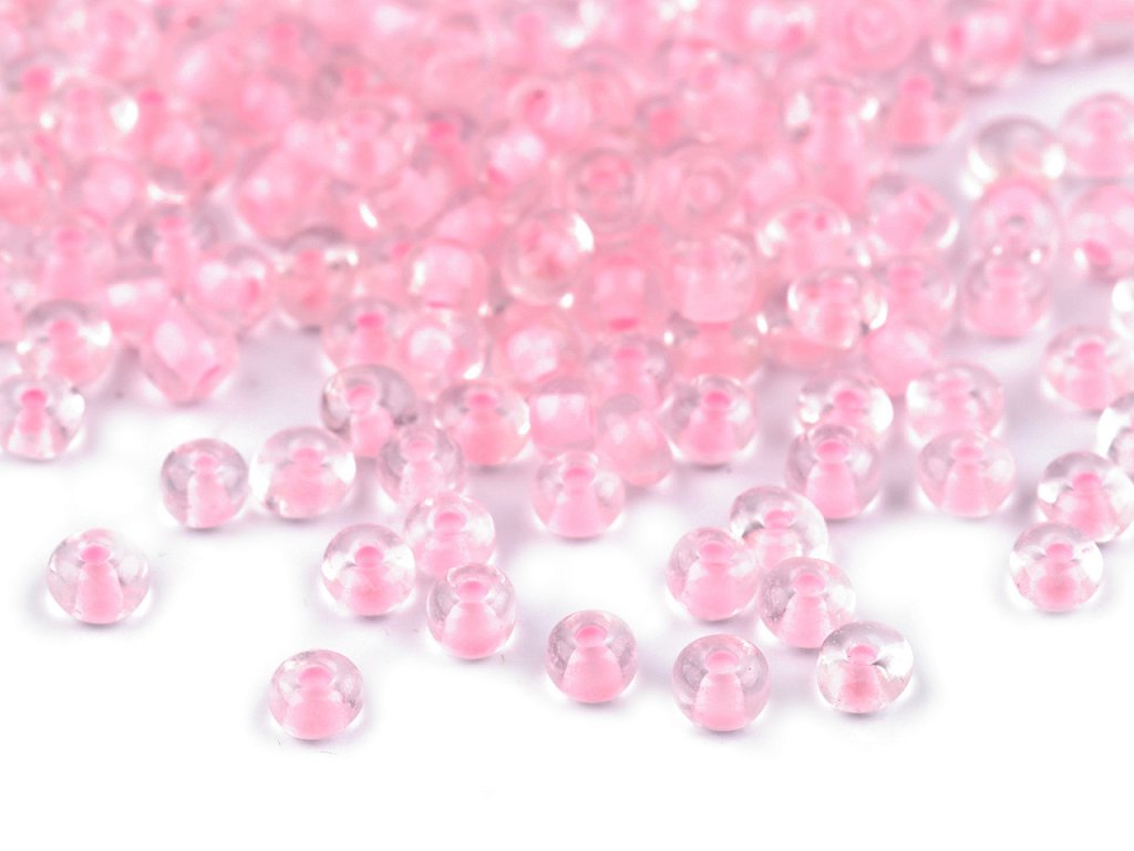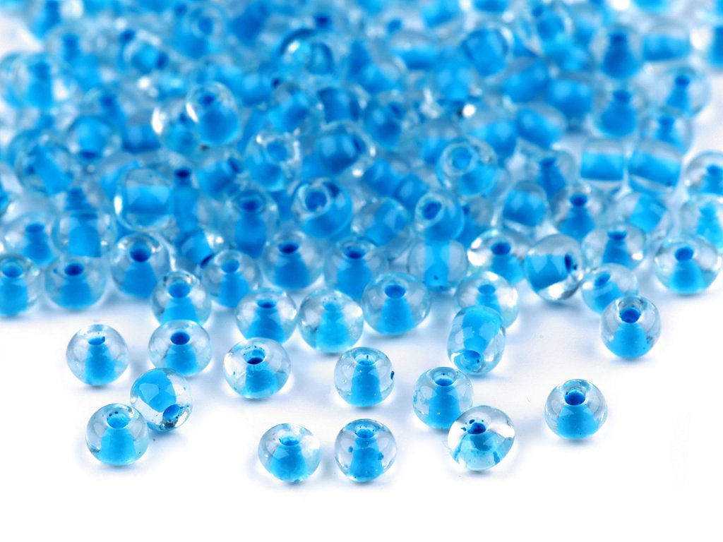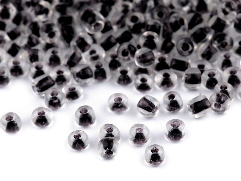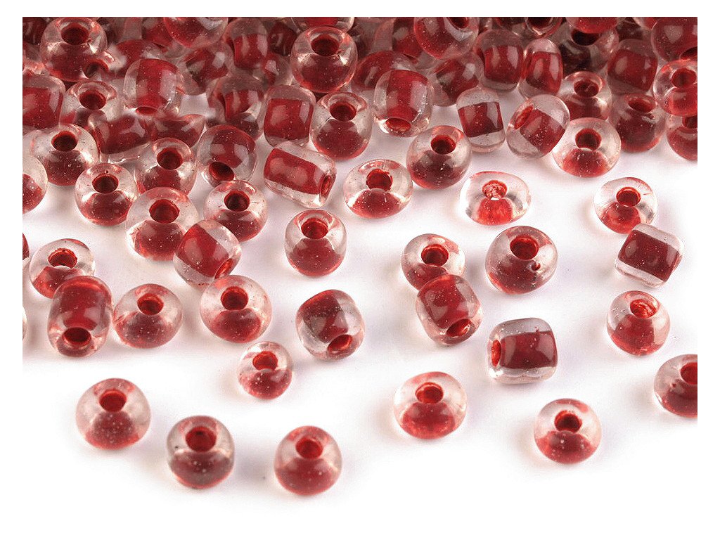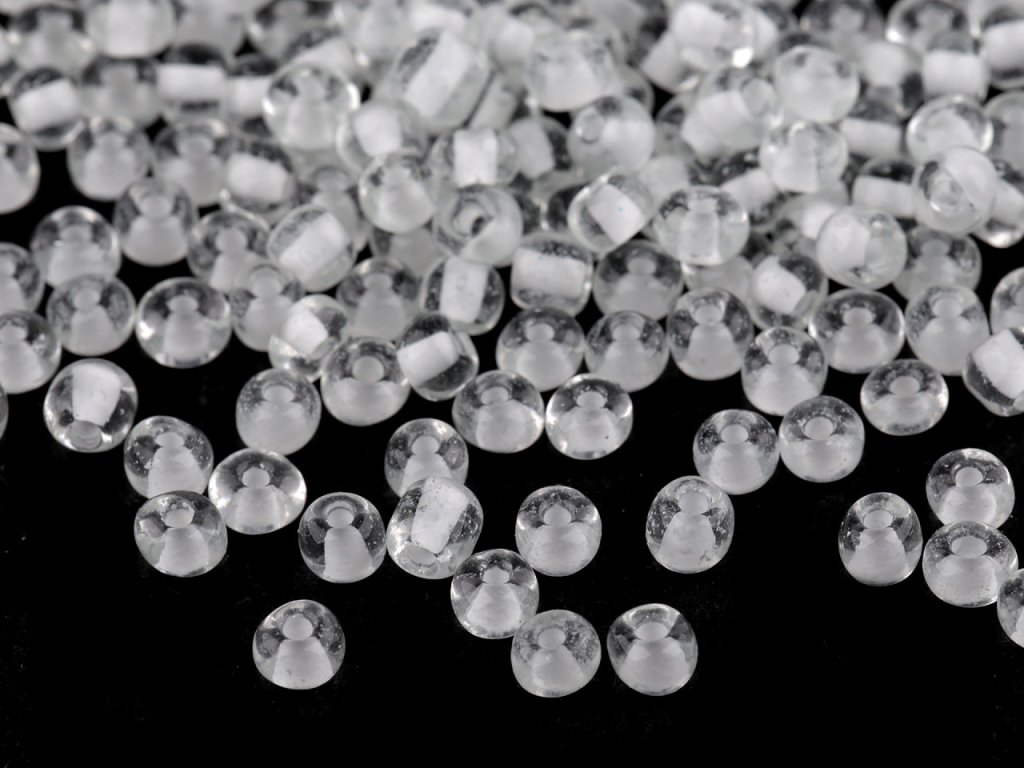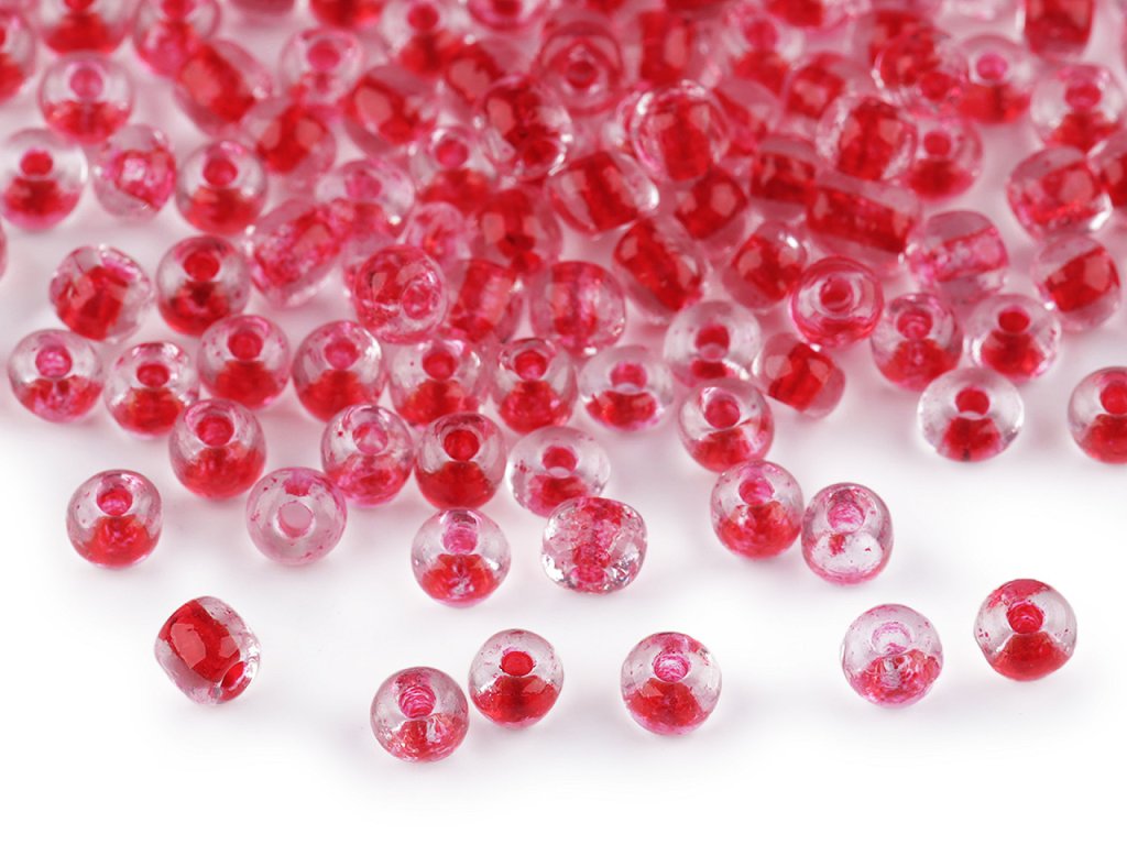 Transaprentní rokajl s barevným průtahem můžete zakoupit v několika barevných variantách. Korálky určitě využijete při navlékání třeba i na voskovaných šňůrkách.Rokajl je po obvodu nepravidelný proto není vhodný pro šitou bižuterii. V 50 g balení je cca 730 ks.- Průměr: 4 mm