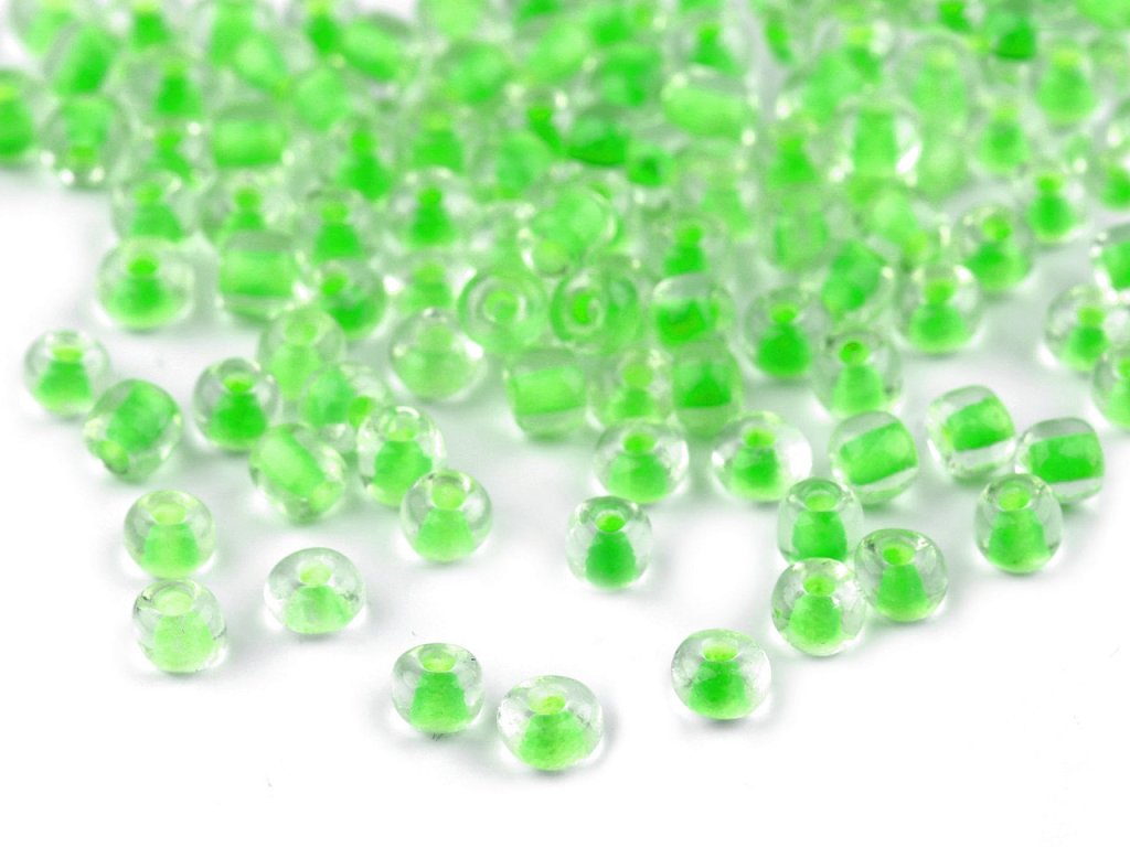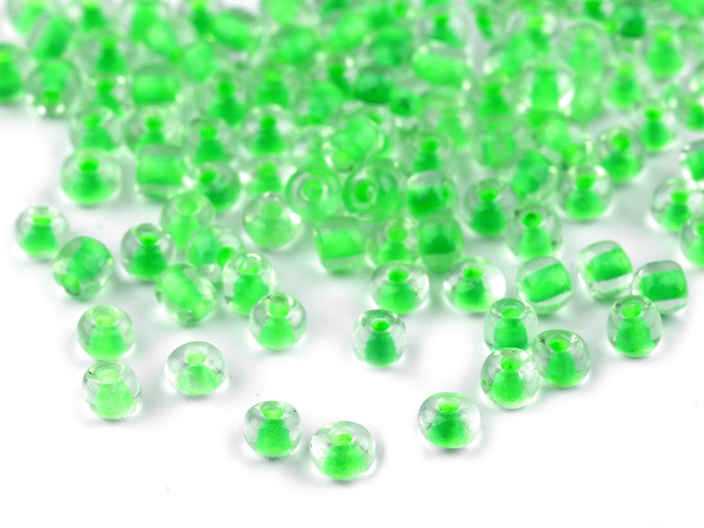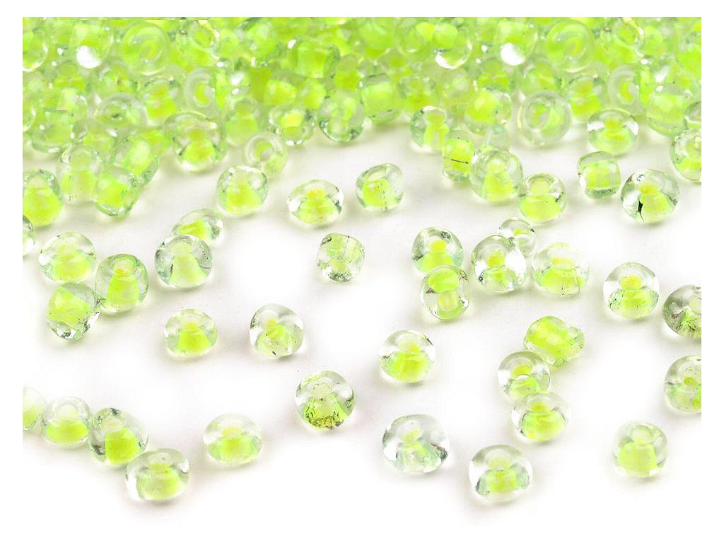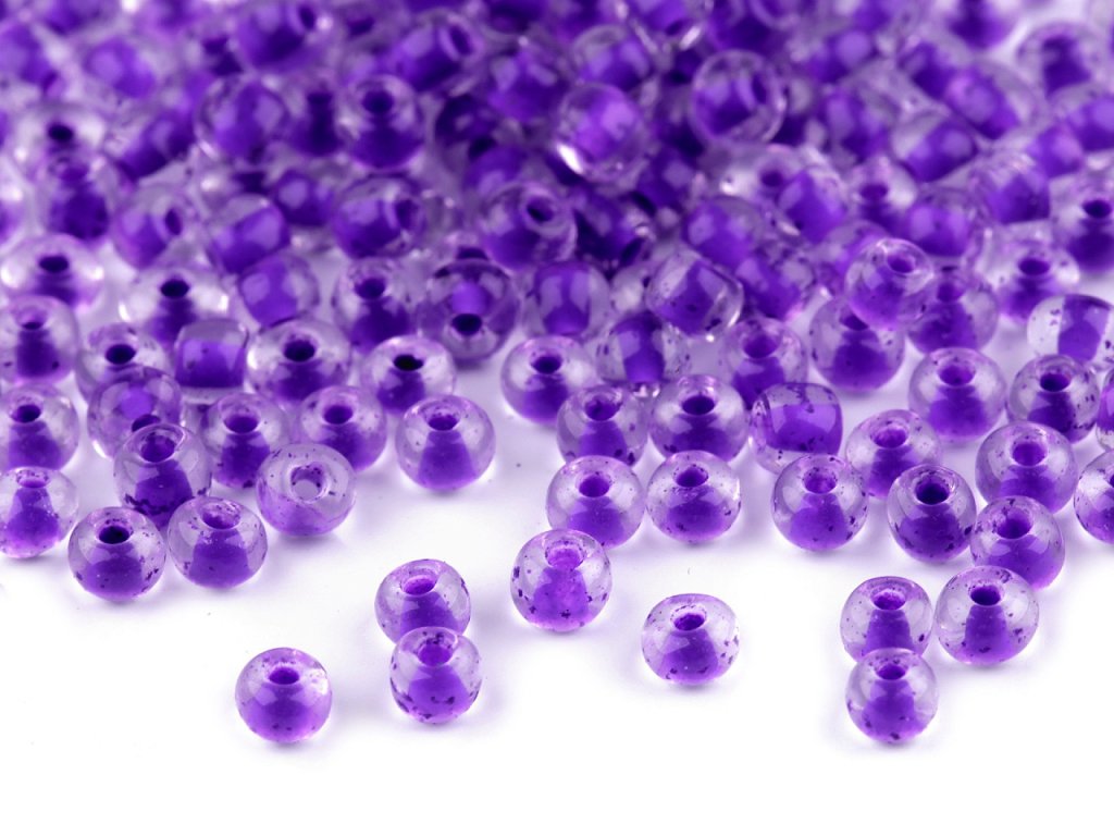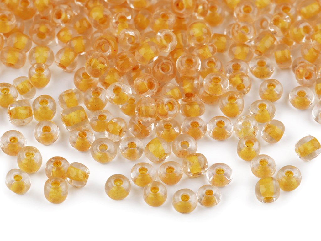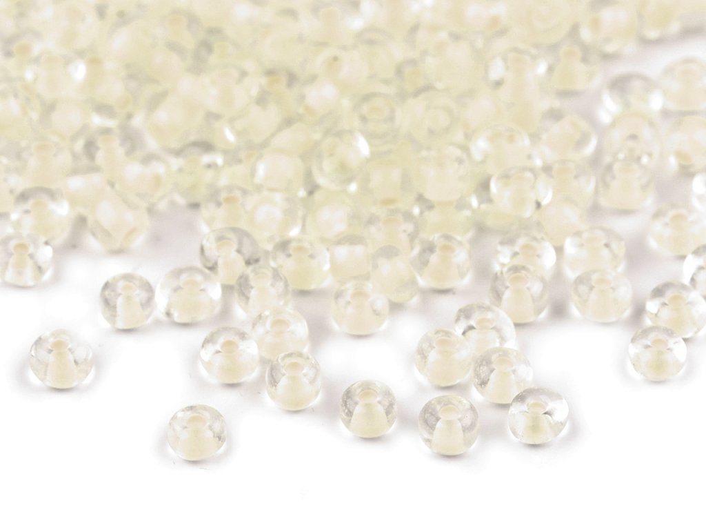 Transaprentní rokajl s barevným průtahem můžete zakoupit v několika barevných variantách. Korálky určitě využijete při navlékání třeba i na voskovaných šňůrkách.Rokajl je po obvodu nepravidelný proto není vhodný pro šitou bižuterii. V 50 g balení je cca 730 ks.- Průměr: 4 mm