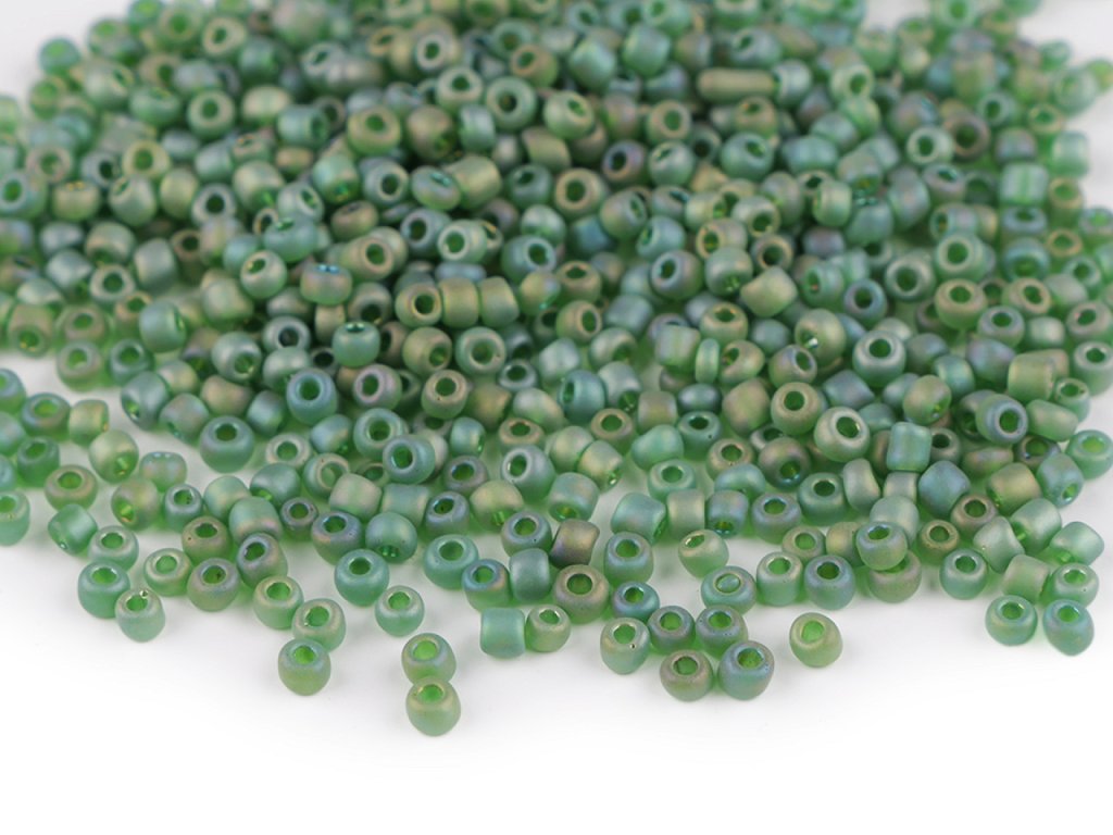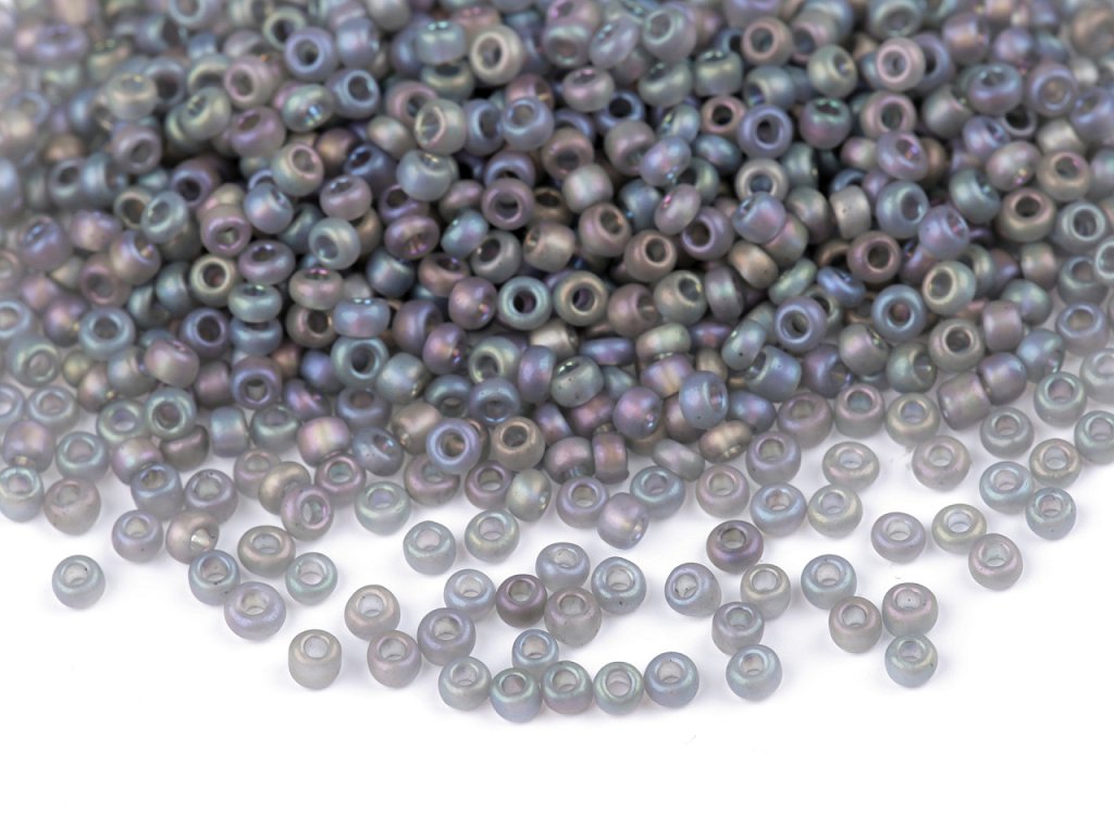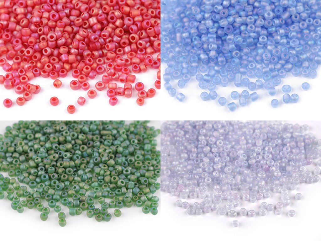 Rokajl s matným AB frosted povrchem je na pohled velice efektní, jakoby složený z několika navzájem prolínajících se barev. Využijete jej pro tvorbu bižuterie a vánočních ozdob. Je poměrně pravidelný, s nepatrnými odchylkami, hodí se na výrobu stromečků z korálků, navlékané nebo ketlované náhrdelníky, motanice, zdobení oděvů našitím rokajlu pomocí aari jehly, na vánoční ozdoby, apod.- Průměr: 3 mm