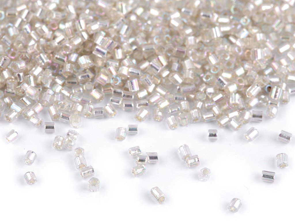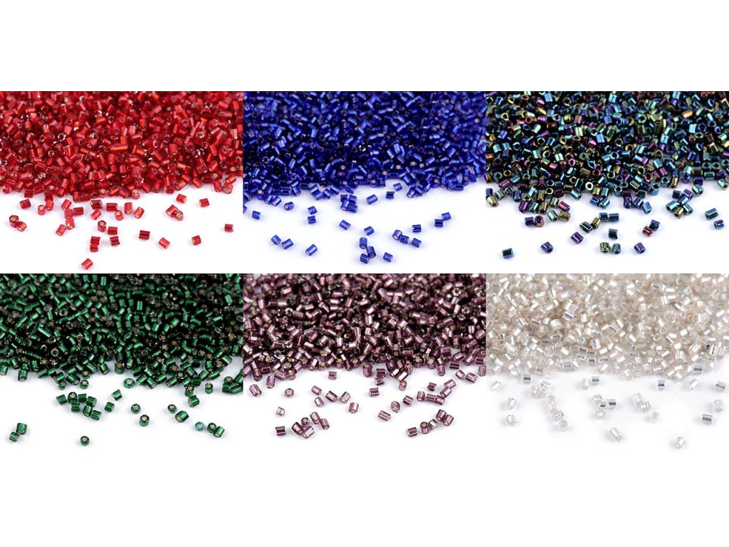 Skleněné sekané korálky rokajl se stříbrným průtahem mají nádherný efektní lesk. Hodí se pro tvorbu elegantní bižuterie a vánočních ozdob (stromečky z korálků, vánoční ozdoby, navlékané nebo ketlované náhrdelníky, náramky atd.) Můžete je využít i na zdobení oděvů nebo dekoračních textilií. Počítejte prosím s tím, že sekaný rokajl, vzhledem k techonologii výroby, může mít ostré hrany. Je mírně nepravidelný, není vhodný pro šité šperky, kde je vyžadována maximální přesnost. Rokajl č. H409 - multikolor, je trochu větší - má průměr 2 mm. Nemá stříbrný průtah.- Průměr: 1,7; 2 mm