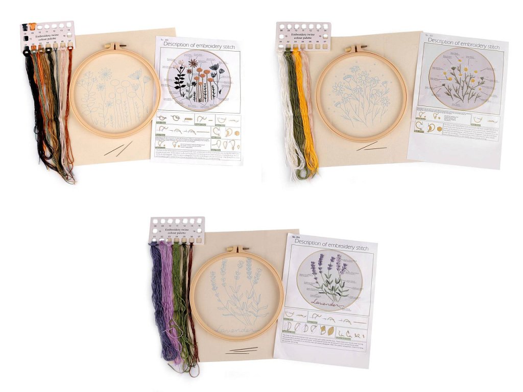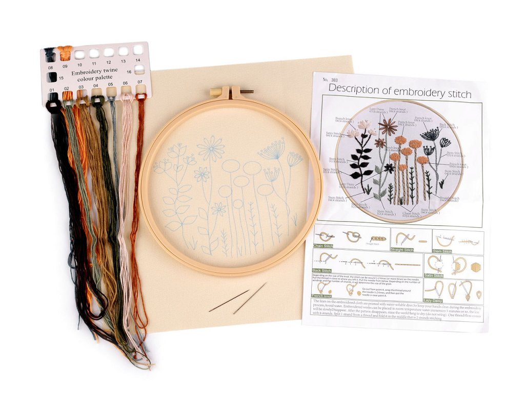 Se sadou na vyšívání vytvoříte pozoruhodné obrazy kytic a lučního kvítí. Vyšívá se na předtištěnou tkaninu pomocí příze mouline. V sadě najdete tkaninu s předlohou, sadu barevných přízí, obrázkový návod, vyšívací jehly a plastový kruh, který vám poslouží rovněž jako rámeček pro hotový obrázek.- Průměr: 18 cm