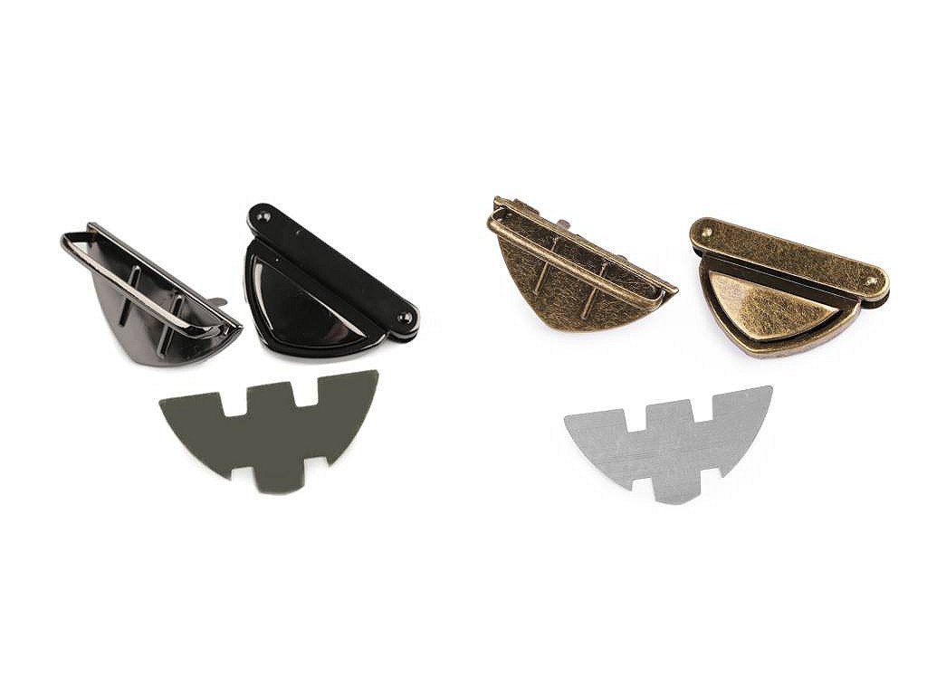 Zapínání na kabelku či tašku se skládá ze tří dílů. Jeden díl se připevní na vnitřní část kabelky, druhý na vnější část kabelky a třetí díl na chlopeň kabelky. Pak už jen stačí zasunout do sebe tak, až uslyšíte cvaknutí. Potom je teprve kabelka bezpečně uzavřena.Zapínání je vyrobené z magnetizujícího kovu. Rozměry viz foto: - vnitřní díl: 25 x 50 mm, - vnější díl: 25 x 50 mm, - díl na chlopeň: 30 x 50 mm. Z rubové strany se mohou vyskytnout rezavé fleky. Zapínání upevníte tak, že rozevřete čelisti, na kterých jsou zoubky. Mezi čelisti vložíte materiál, na který chcete zapínání upevnit a následně čelisti sevřete, zoubky tak zamezí pohybu látky.- Rozměry: 25 x 50 mm
