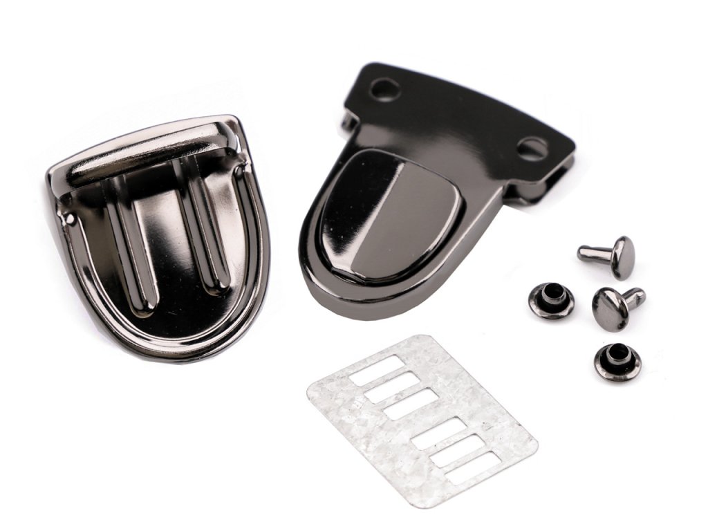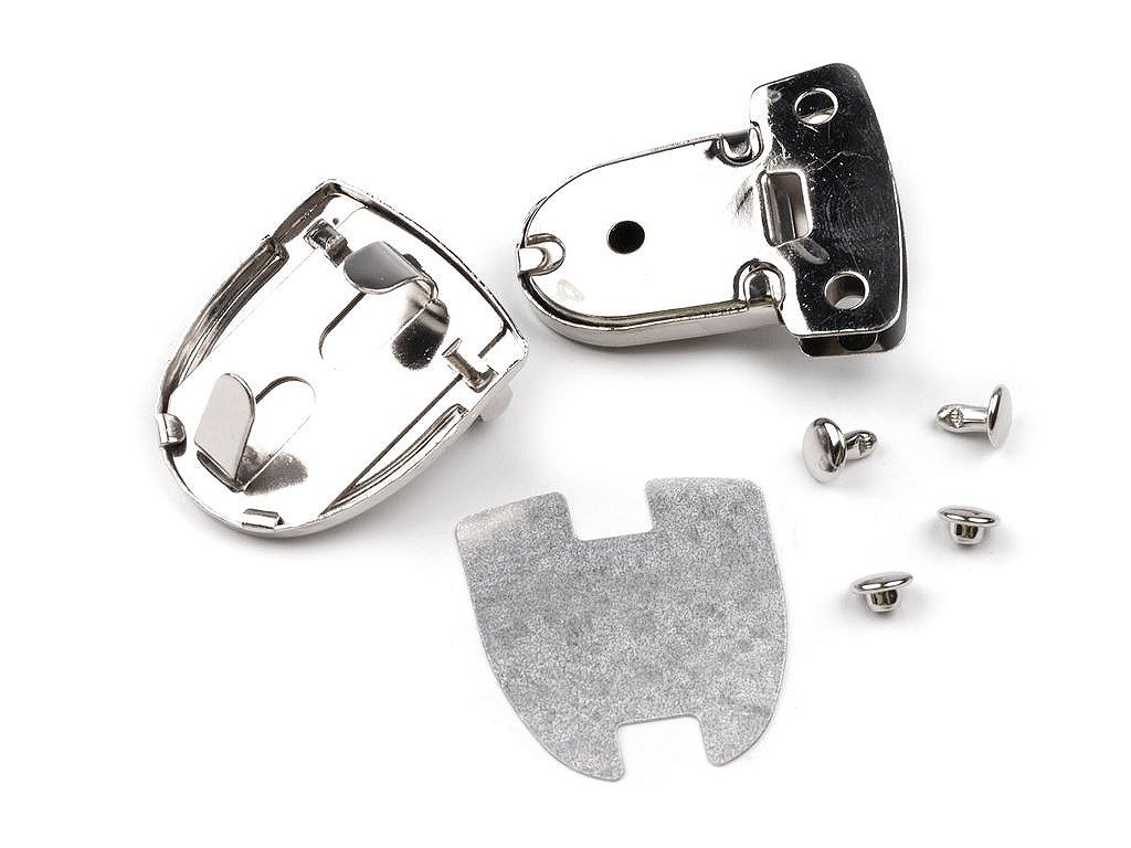 Zapínání na kabelku či tašku se skládá ze dvou dílů, plíšku a nýtku. K dílu bez dírek patří plíšek, který se k dílu připevní z vnitřní části tašky. Plíšky se mohou u jednotlivých balení lišit. Druhý díl s nýtky patří na chlopeň kabelky. Pak už je jen stačí zasunout do sebe tak, až uslyšíte cvaknutí. Potom je teprve kabelka bezpečně uzavřena. Tato sada obsahuje 2 páry nýtků. Průměr nýtku je 6 mm. Jeho výška je 7 mm. Z rubové strany se mohou vyskytnout rezavé fleky.- Rozměry: 30 x 40 mm