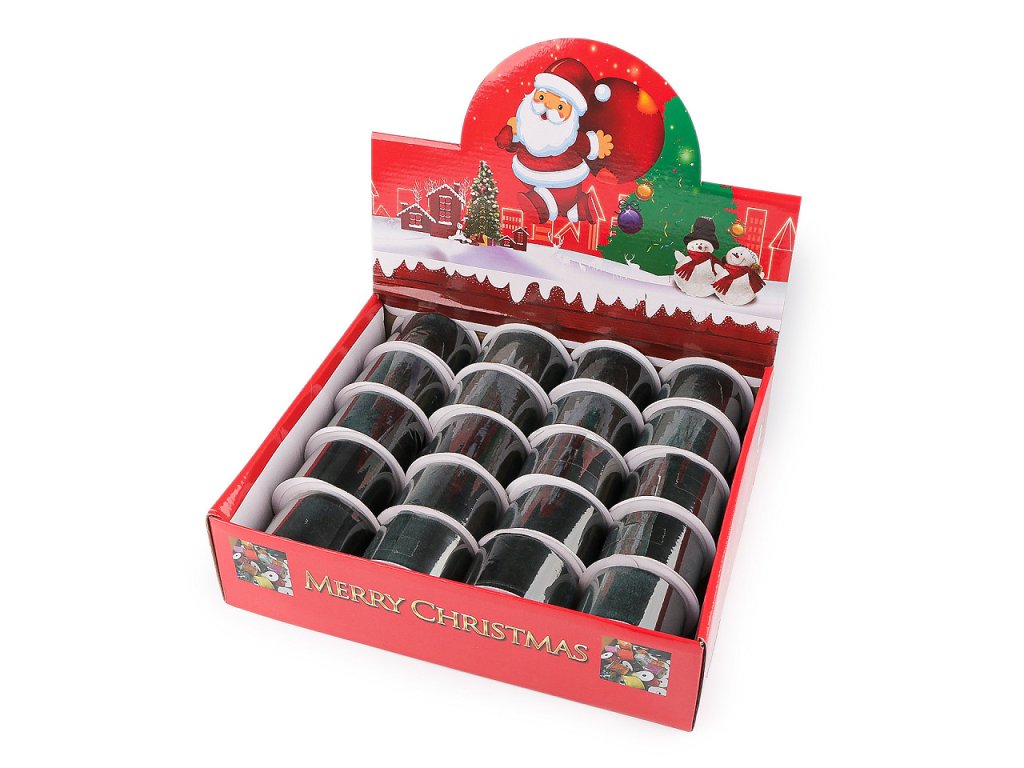 Široká sametová stuha je na dotek příjemná a měkká. Využijete ji na vánoční mašle, věnce, k dekoraci slavnostní tabule i židlí. Vynikne také v květinových vazbách. Je oblíbená i na balení dárků. Je navinutá na praktické cívce, což usnadňuje její použití a skladování. Velké balení 20 cívek je zabalené v papírové krabici s vánočním potiskem, která je vhodná na vystavení na prodejní pult. Má rozměry 27 x 33 x 8 cm.- Šíře: 50 mm