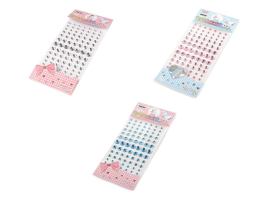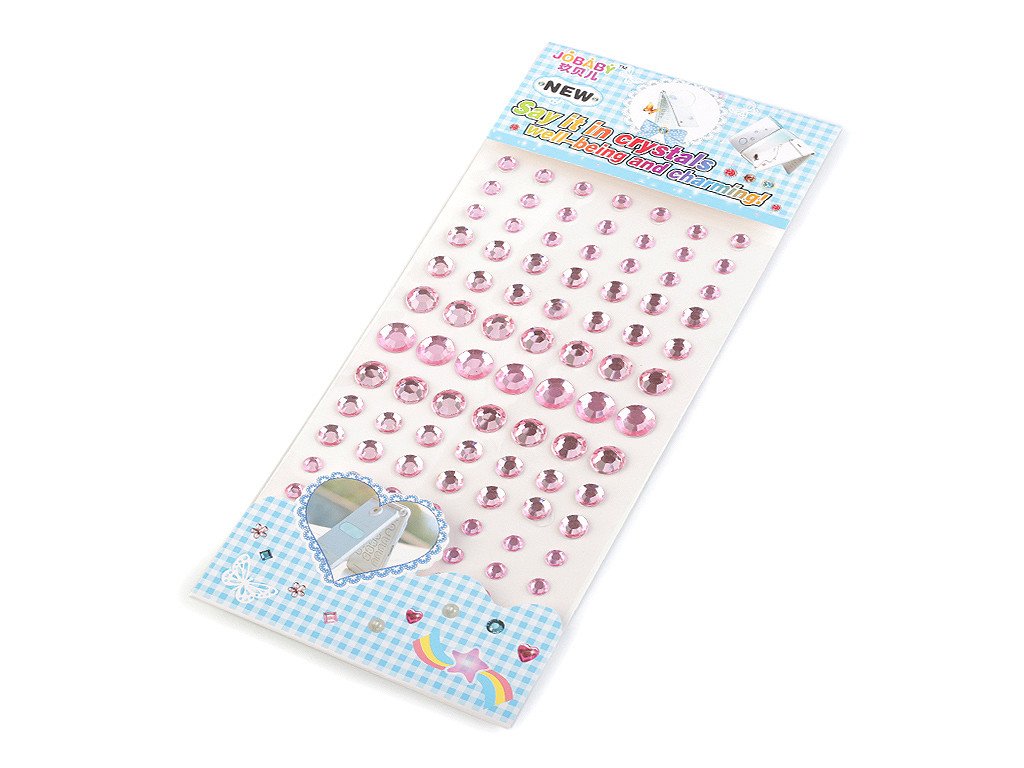 Kulaté broušené kamínky v mixu velikostí jsou vhodné na scrapbooking. Všechny jsou nalepené na jednom archu podkladové folie, ze které je stačí sejmout. Mají oslnivý lesk a třpyt. Doporučujeme je lepit na suchý, hladký a pevný povrch. Samolepicí kamínky využijete ke zdobení mobilů, tabletů, počítačů, přáníček, krabiček, rámečků fotografií, květináčů, fotoalb apod. Na archu jsou kamínky s průměry 6, 8, 10 a 12 mm.- Průměr: 6 - 12 mm