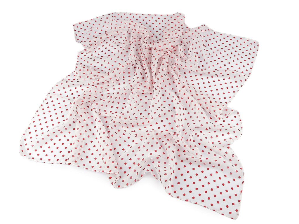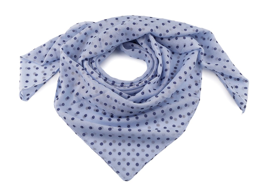 Puntíkovaný šátek je vzdušný a lehounký, velice příjemný na dotek. Je jemně průsvitný, doladí váš outfit, ať už si vezmete sako, halenku, svetřík či šaty. Šátky mohou mít špatné štítky, skutečné složení je 100% polyester.- Šířka: 85 cm