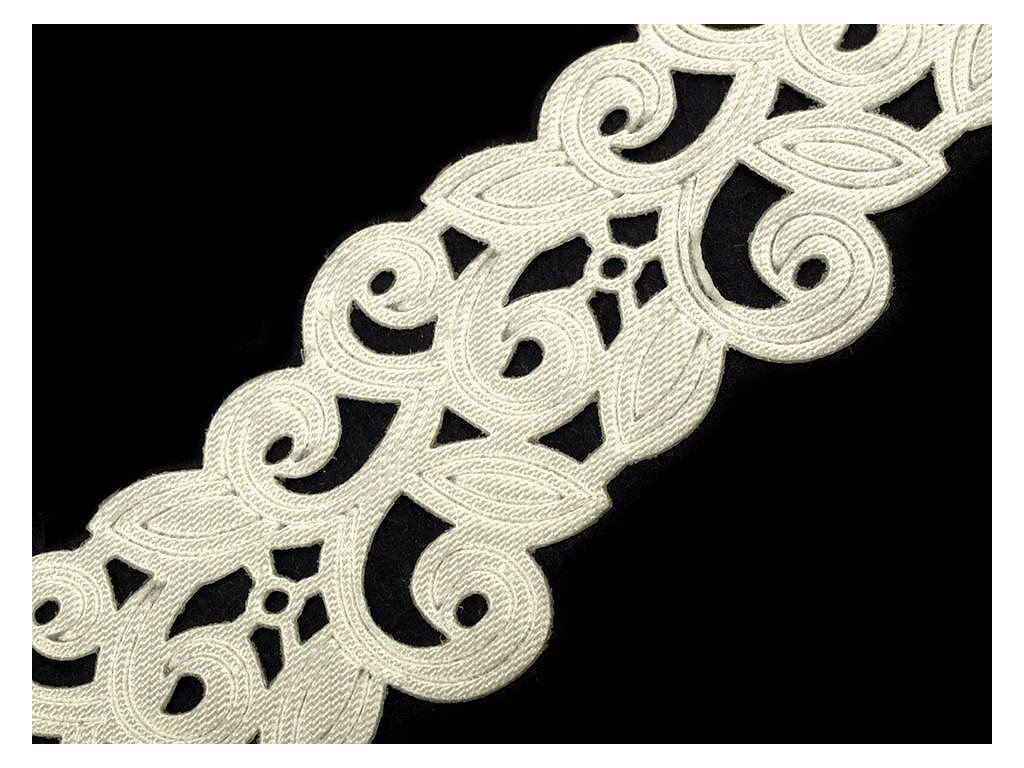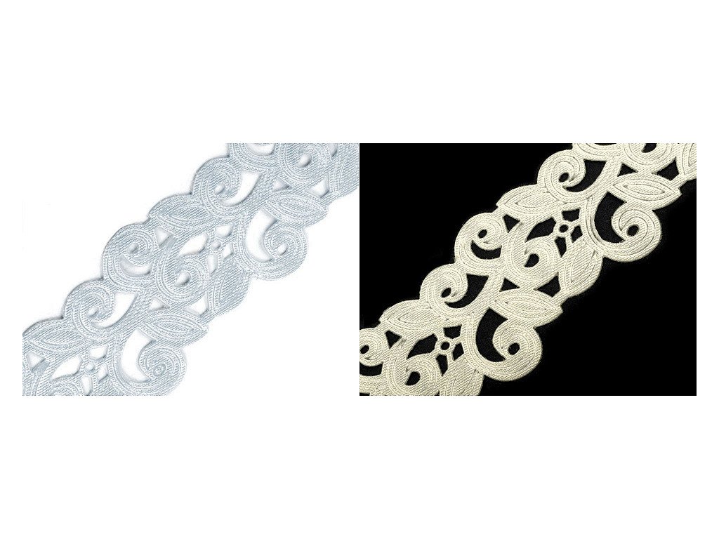 Jemný saténový prýmek působí romantickým dojmem. Zdobí ho vysekávané vzory, které jsou vzhledem k technologii výroby precizní a rovnoměrné. Použití: Prýmek můžete našít na oděvy. Vynikne také na svatebních polštářcích, na slavnostní tabuli, květinových vazbách i jako dekorace aut. Některé výseky je nutno ručně odstranit, není to důvod k reklamaci.- Šíře: 22 mm