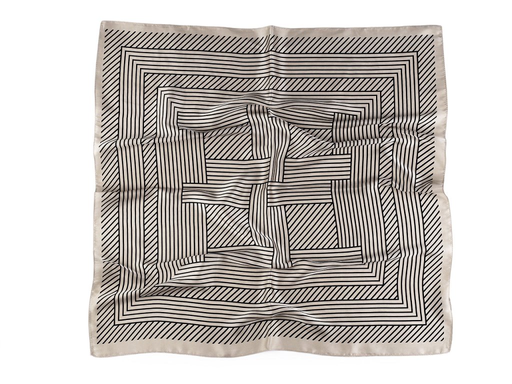 Saténový šátek oživí každý váš outfit. Jeho decentní design s proužky přináší nádech elegance a stylu, díky čemuž je ideálním doplňkem pro různé příležitosti. Šátek je lehký a příjemný na dotek, což zajišťuje komfortní nošení po celý den.- Šířka: 65 cm