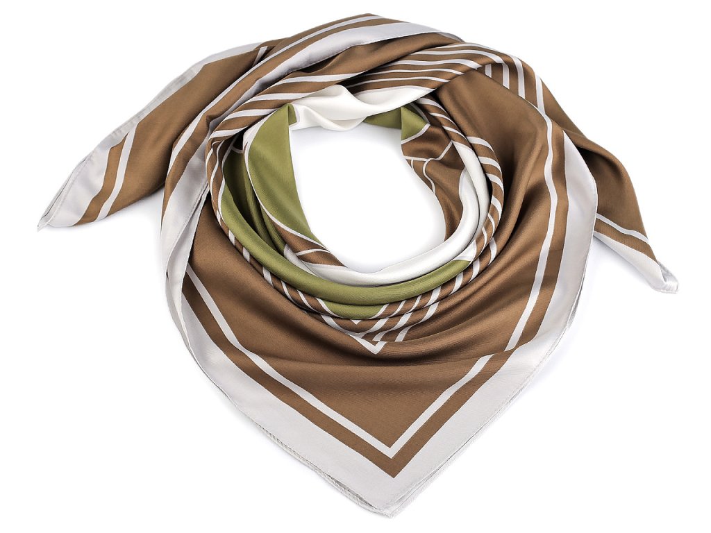 Saténový šátek je elegantní a stylový doplněk, který osvěží každý outfit. Je lehký a příjemný, na dotek připomíná hedvábí, což zajišťuje komfortní nošení po celý den. Doladíte s ním halenky, kostýmky, šaty a můžete ho uvázat i na kabelku.- Šířka: 90 cm