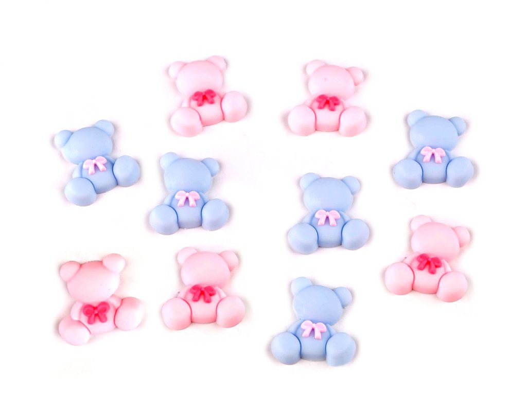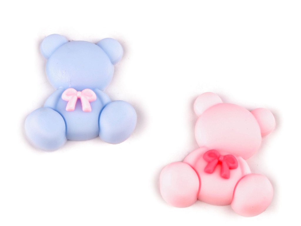 Silikonové ozdoby medvídků mají 3D zpracování. Jsou velice roztomilé, ocení je nejenom děti. Spodní část mají plochou, vhodnou k nalepení. Silikon je ohebný, může kopírovat i jemně oblé plochy. Ozdoby využijete na scrapbooking a zdobení dalších předmětů např. přání k narození děťátka i k narozeninám, pozvánek, foto rámečků, alb apod. Hodí se i na výrobu malých magnetek, sponek pukaček a čelenek. Můžete je nalepit na školní pouzdro, batoh, svačinový box apod. Doporučujeme je lepit na suchý, hladký a pevný povrch.- Rozměry: 24 x 28 mm