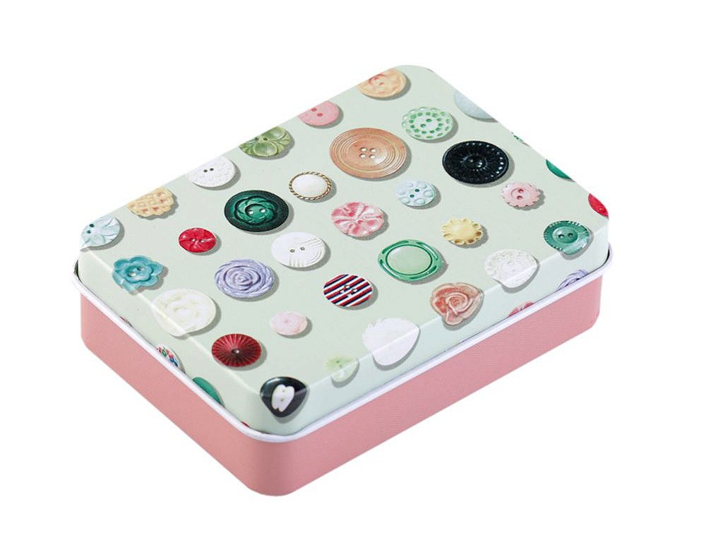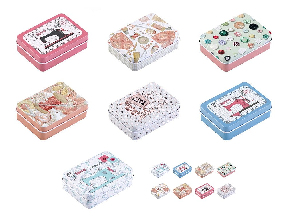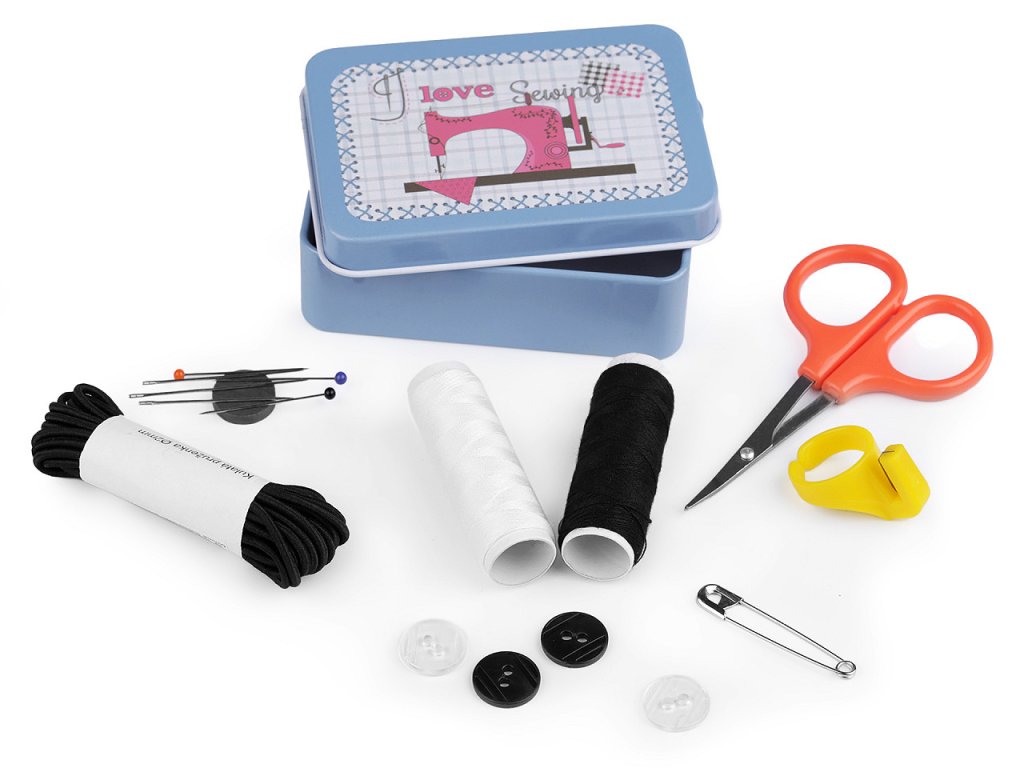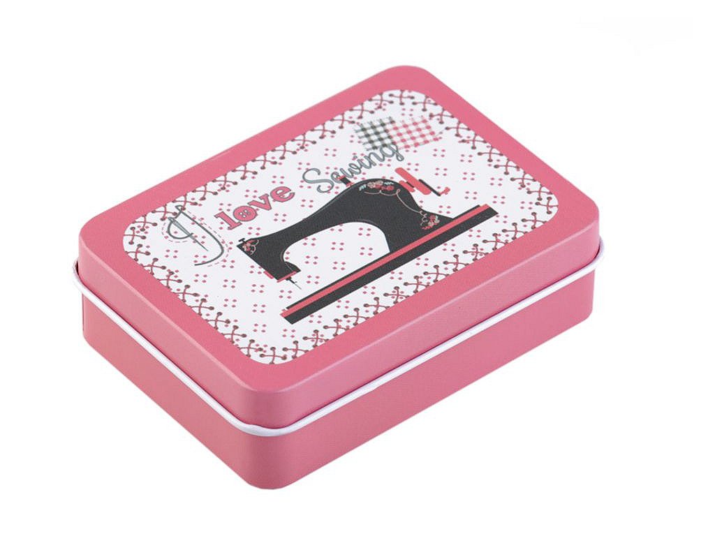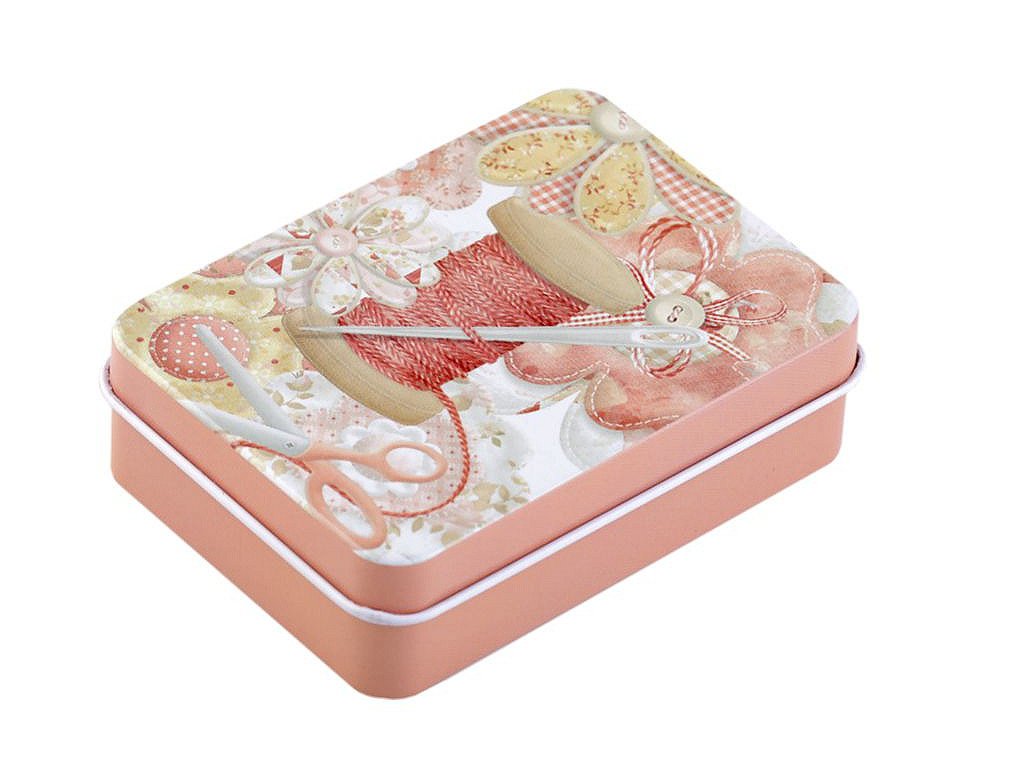 Šitíčko ve stylové plechové krabičce s krejčovským designem oceníte v každé domácnosti. Šitíčka máme dostupné v mixu variant. Obsah sady: - 2 ks polyesterové nitě v návinu 45 m (barva nití se může lišit) - malé cestovní nůžky - 1 ks spínací špendlík - 3 ks špendlík s plastovou hlavičkou - 3 ks jehly - 4 ks dvoudírkové knoflíky (barva knoflíků se může lišit) - náprstek s odstřihovačem nití - 3 m kulatá pruženka (Ø2 mm) - magnet- Rozměry: 6,5 x 9 cm