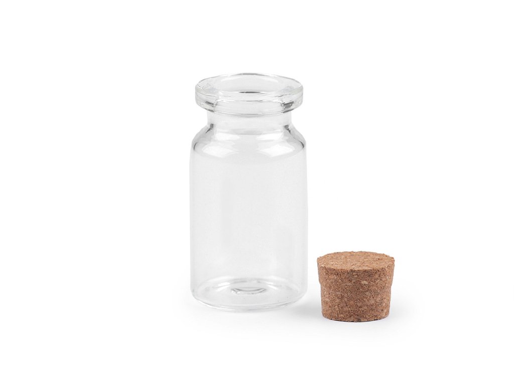 Velmi praktická skleněná lahvička vhodná na skladování drobných perliček jako je např. rocail. Díky průhlednosti dóziček jsou korálky v lahvičkách velmi přehledné. Korkový uzávěr pevně uzavře obsah dózy. Vybavte si svou tvořivou dílnu. Materiál pro nejrůznější výtvarné techniky bude více přehledný a ihned po ruce. Objem lahvičky je 8 ml. Vnitřní průměr otvoru lahvičky je 11 mm, vnější je 19 mm.- Průměr: 20 mm