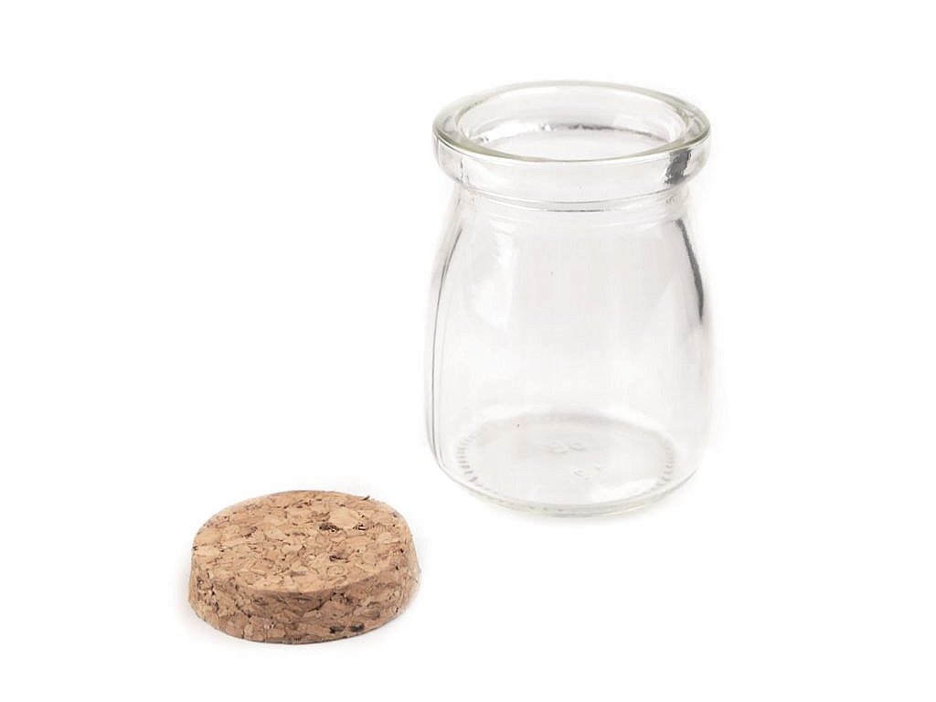 Skleněná dóza s korkovou zátkou má všestranné využití. Skvěle vám poslouží k praktickým i dekoračním účelům. Můžete do ní nasypat minerály, korálky, různé bižuterní komponenty, sůl do koupele, dekorační písek apod. Náš tip: Lahvičku si můžete sami dozdobit pomocí drátování nebo techniky decoupage. Vnitřní průměr otvoru lahvičky je 40 mm, vnější 52 mm. Výška samotného skla bez korku je 70 mm. Obsah lahvičky po hrdlo je 100 ml (může se uzavřít korkem), celá naplněná lahvička až po okraj pojme 110 ml.- Průměr: 56 mm