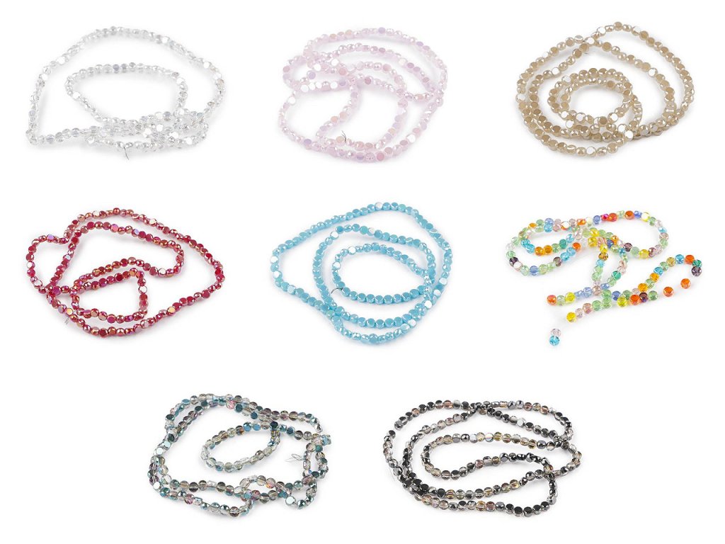 Skleněné korálky broušené 4 mm ploché, na drátku