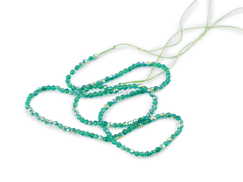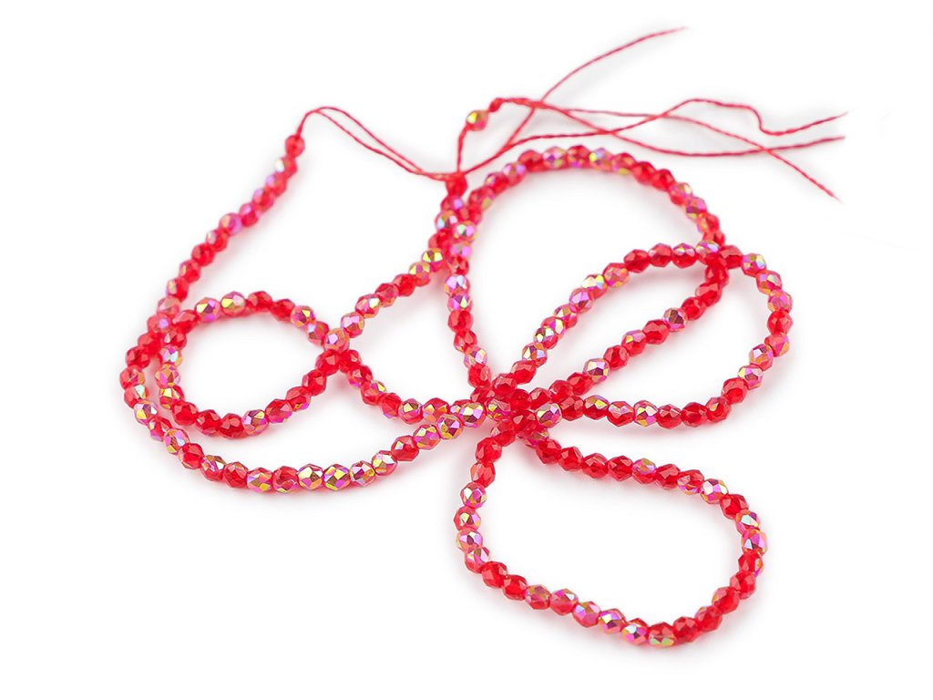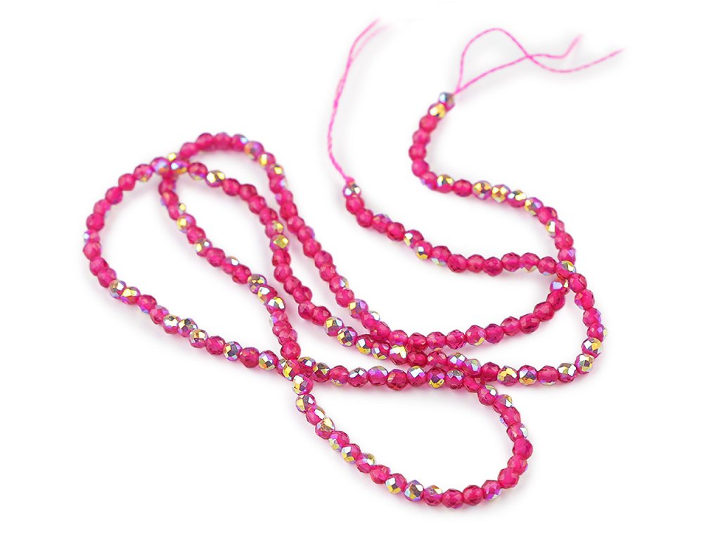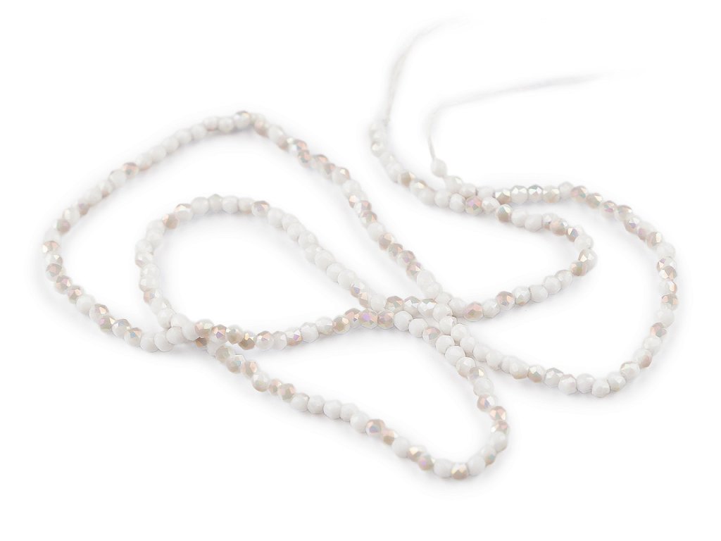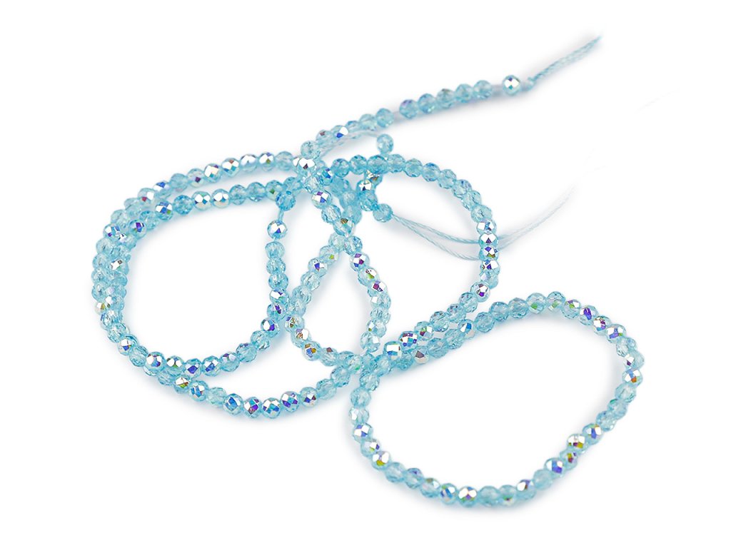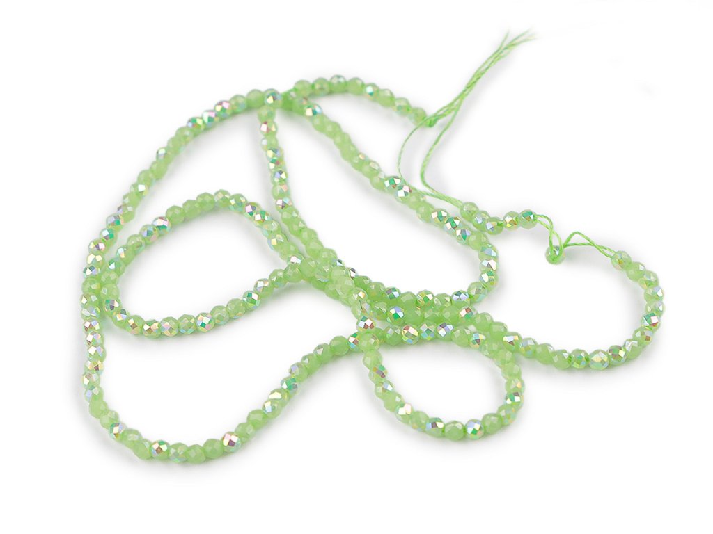 Skleněné korálky broušené ohňovky 2 mm s AB efektem, na šňůrce