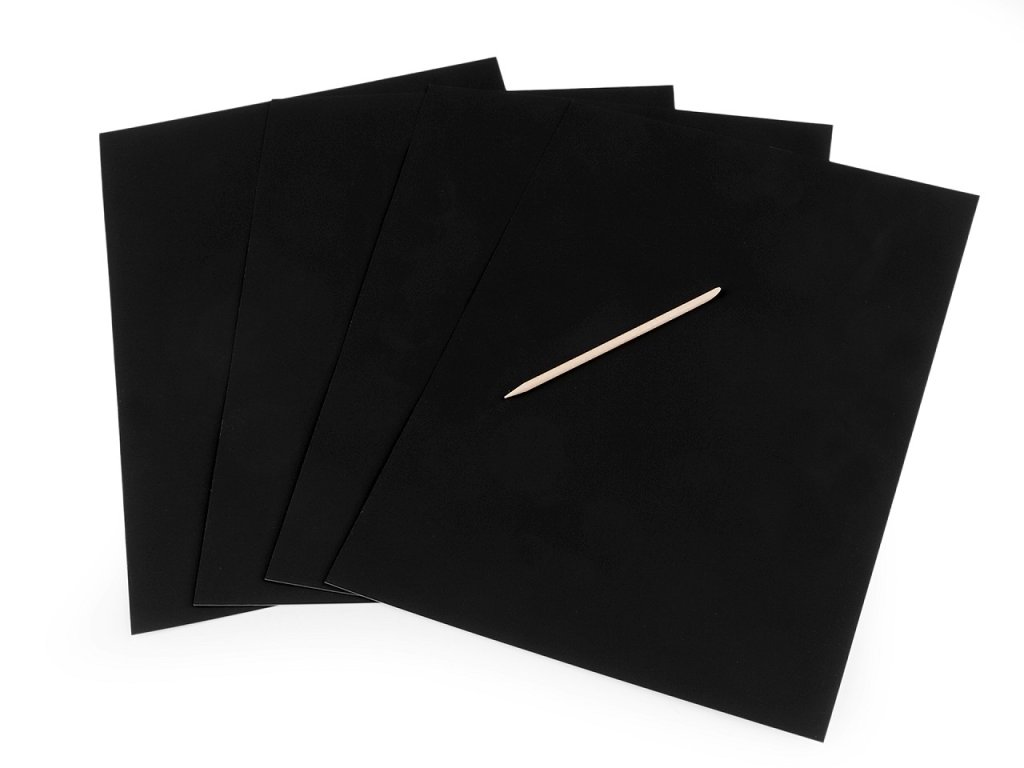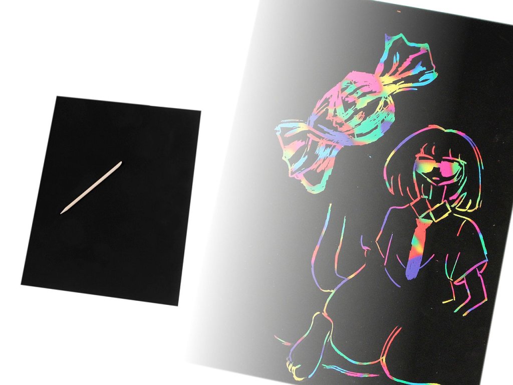 Sada prázdných duhových škrabacích papírů nadchne děti i dospělé kreativce. Každý z těchto 4 matných černých papírů skrývá pod povrchem nádhernou paletu duhových barev, která se odhalí po seškrábnutí svrchní vrstvy. Sada obsahuje také praktické dřevěné škrabátko, které umožňuje snadné a přesné vytváření obrazců, linií nebo detailních motivů. Škrabací papíry můžete využít k rozvoji kreativity a jemné motoriky. Jsou ideální pro tvořivé chvíle s dětmi, výrobu vlastních dekorací, přáníček nebo originálních dárků pro vaše blízké.- Rozměry: 21 x 29 cm