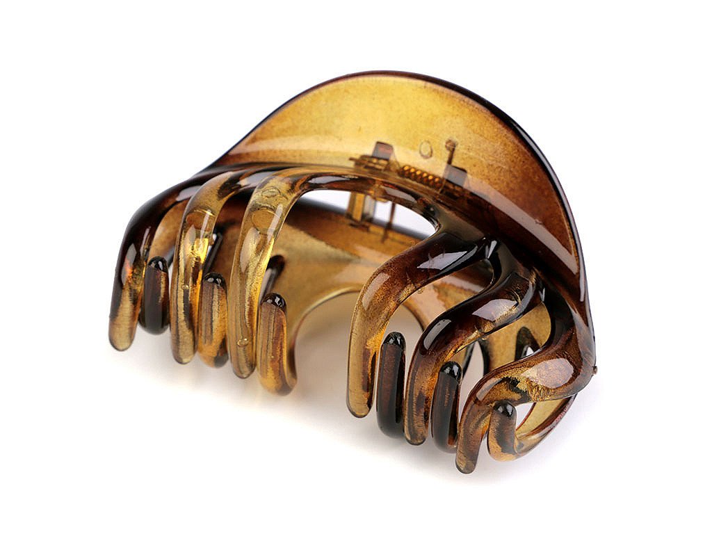 Velmi oblíbené ozdoby do vlasů jsou skřipce. Plastové skřipce mají netradiční tvar zaoblených zubů, díky kterým získávají elegantní vzhled. Mají pevný stisk, ve vlasech budou dobře držet i v hustějších vlasech. Skvěle doplní váš účes. Rozměry: 45 x 75 mm (šířka x délka).- Šířka: 4,5 cm