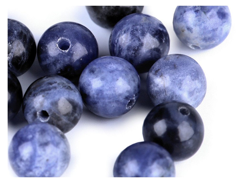 Minerální korálky ze sodalitu jsou oblíbené především šperkaři pro svou krásnou barvu a kresbu. Svou velikostí jsou ideální na výrobu jemnějších Buddhových náramků. Jsou oblíbené na techniku drátování, v kombinaci s drahými kovy, ale i s obyčejnými drátky. Skvěle vypadají i na jednoduchých návlekových šňůrách, které zajímavě ozvláštní.- Průměr: 6 mm