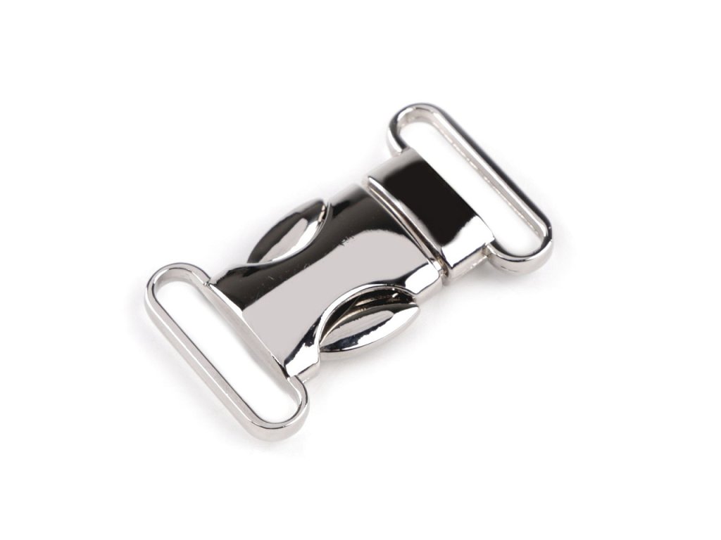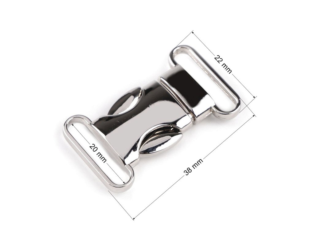 Celokovová spona se pyšní svou bytelností a vysokým zrcadlovým leskem. Skládá se ze dvou částí, které do sebe zacvaknete. Využijete ji jako netradiční a elegantní zapínání lacláčů a šatů, ale také na výrobu ledvinkových opasků, brašen, batohů apod.- Šíře průvleku: 20 mm