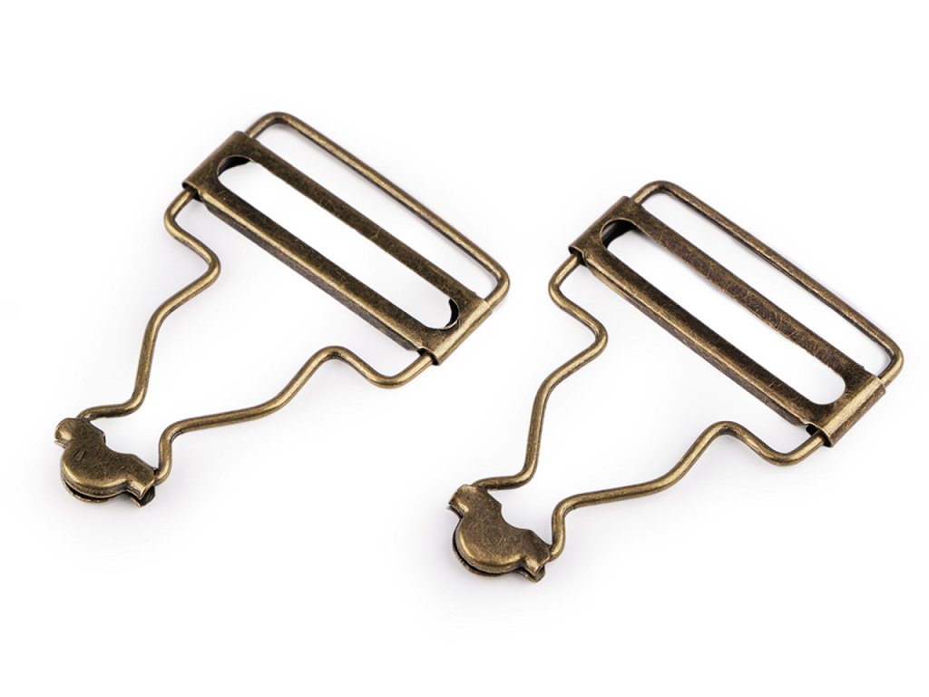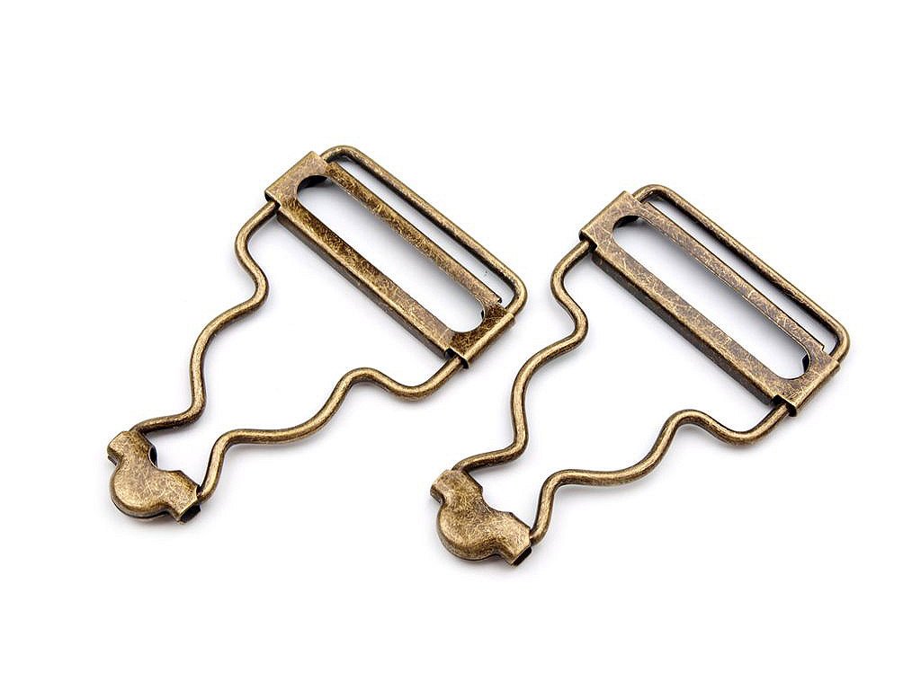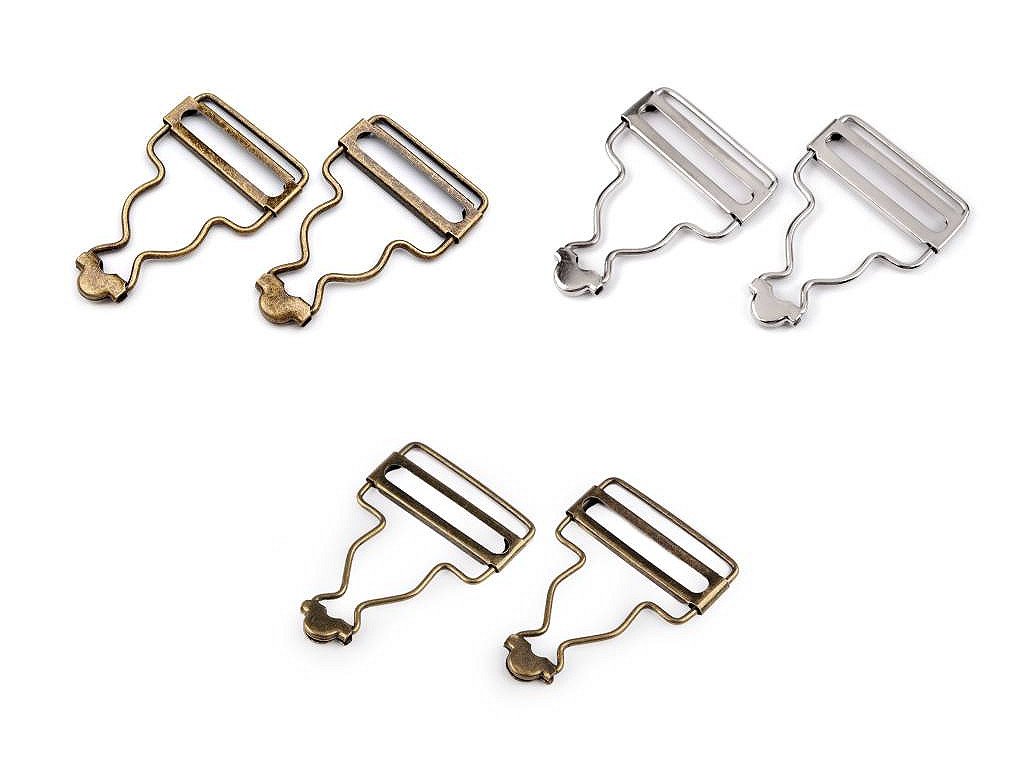 Kovová spona je kvalitní. Využijete ji především jako zapínání na laclové kalhoty nebo šle. Ke sponě můžete použít knoflíky, které najdete pod kódem 110992. Rozměry: - varianta č. 1: 36 x 54 mm - varianta č. 2: 34 x 52 mm - varianta č. 3: 43 x 58 mm - varianta č. 4: 43 x 58 mm- Šíře průvleku: č. 1: 30 mm