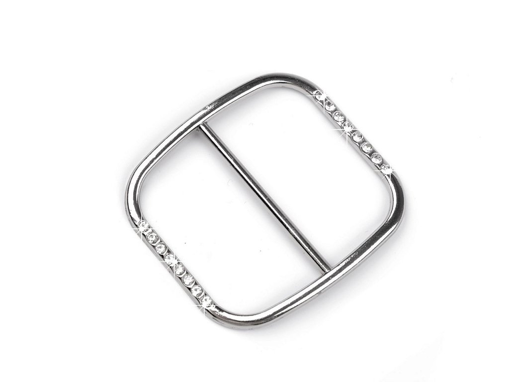 Kovová spona je místy osázená třpytivými broušenými kamínky, díky kterým působí elegantně. Vynikne jako ozdoba plesových a večerních šatů nebo doplňků (psaníček, kabelek apod.).- Rozměry: 46 x 50 mm