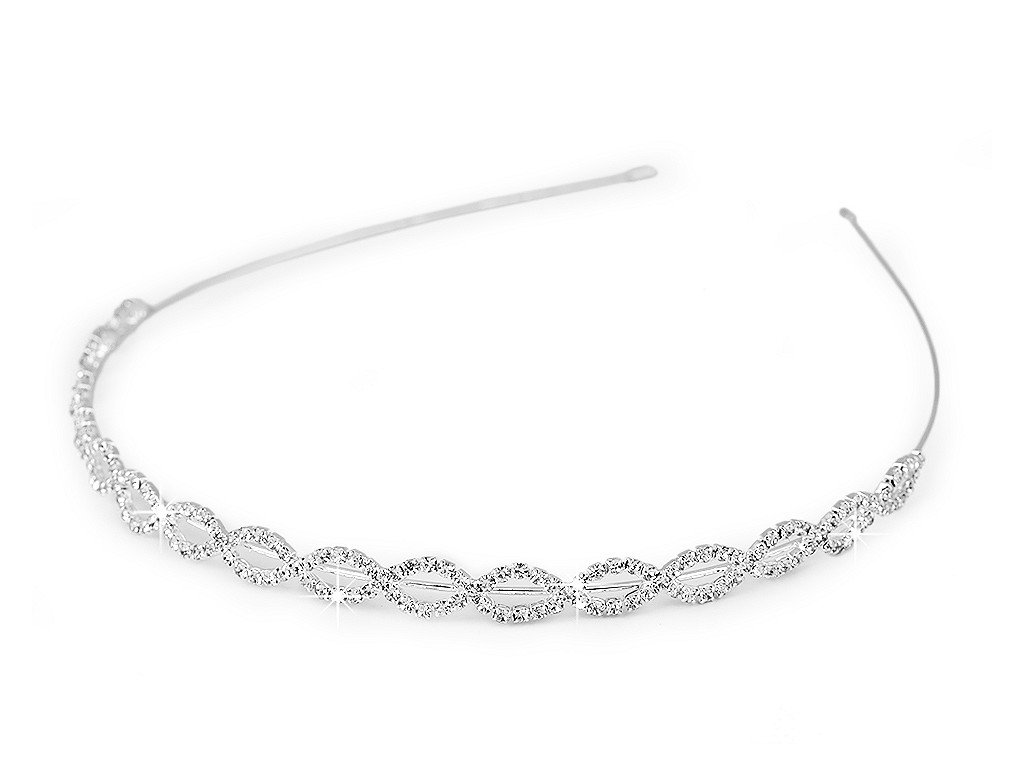Čelenka se štrasovými kamínky se už z dálky třpytí. Hodí se nejenom jako doplněk do vlasů pro nevěsty a družičky, ale také na slavnostní příležitost jako jsou různé plesy, party, večírky, narozeniny apod. Na kovovém základu jsou pevně připevněná kovová lůžka, do nichž jsou vsazené skleněné broušené kamínky. Čelenka působí jemným dojmem, váš vzhled bude okouzlující.- Obvod: 36 cm
