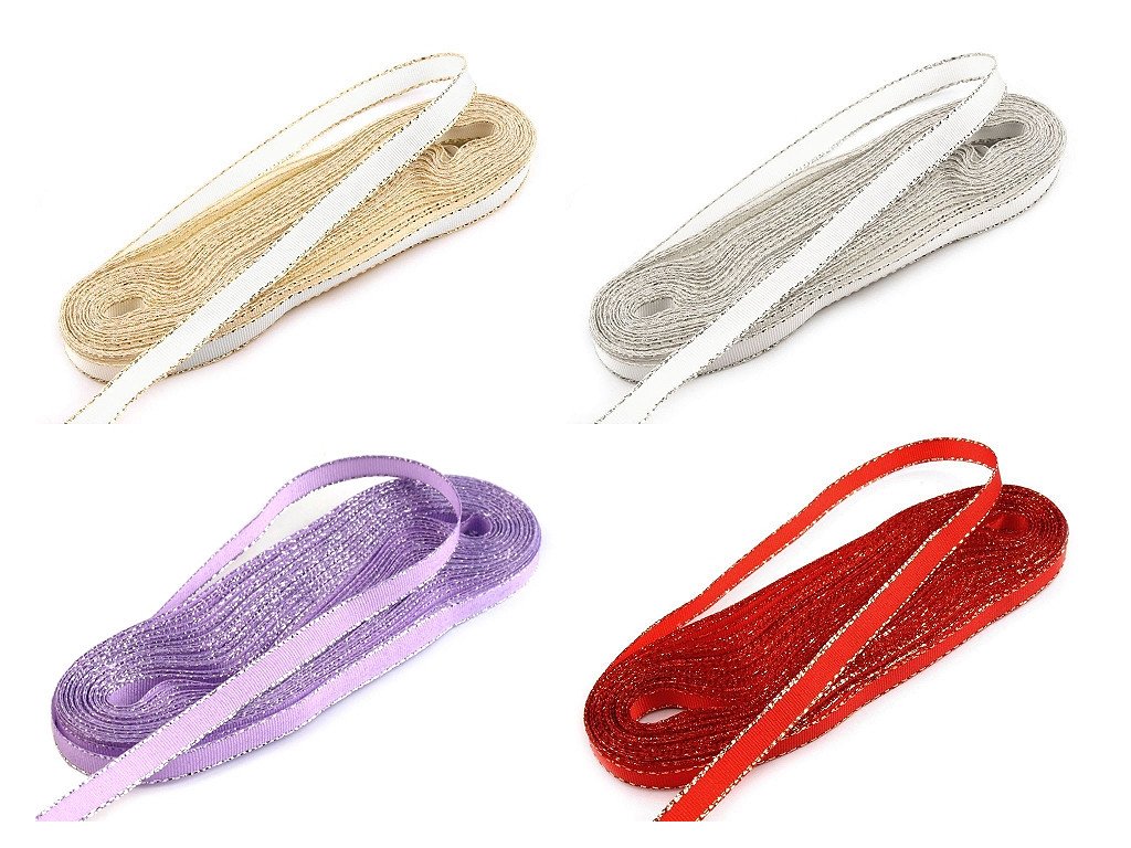 Taftová stuha s lurexem každého zaujme svým jemným elegantním třpytem. Lurex je po stranách, stuha je ideální pro zdobení dárkových balení, tvorbu ozdob na sváteční stůl, svatební dekorace a různé kreativní projekty. Podniková norma fa Stuha povoluje na 10 metrových návinech dva odstřihy, které jsou k sobě slepené, tolerance u 10 m návinů je +/- 10 cm.- Šíře: 6 mm