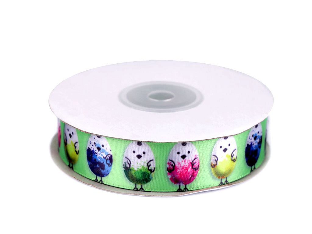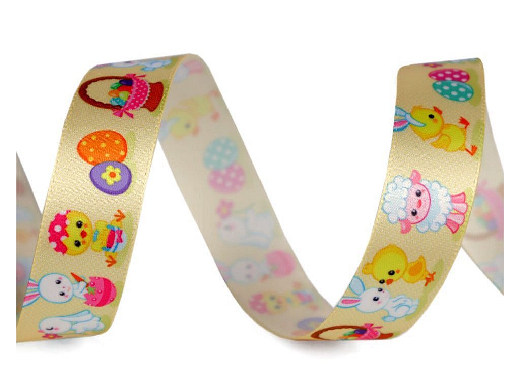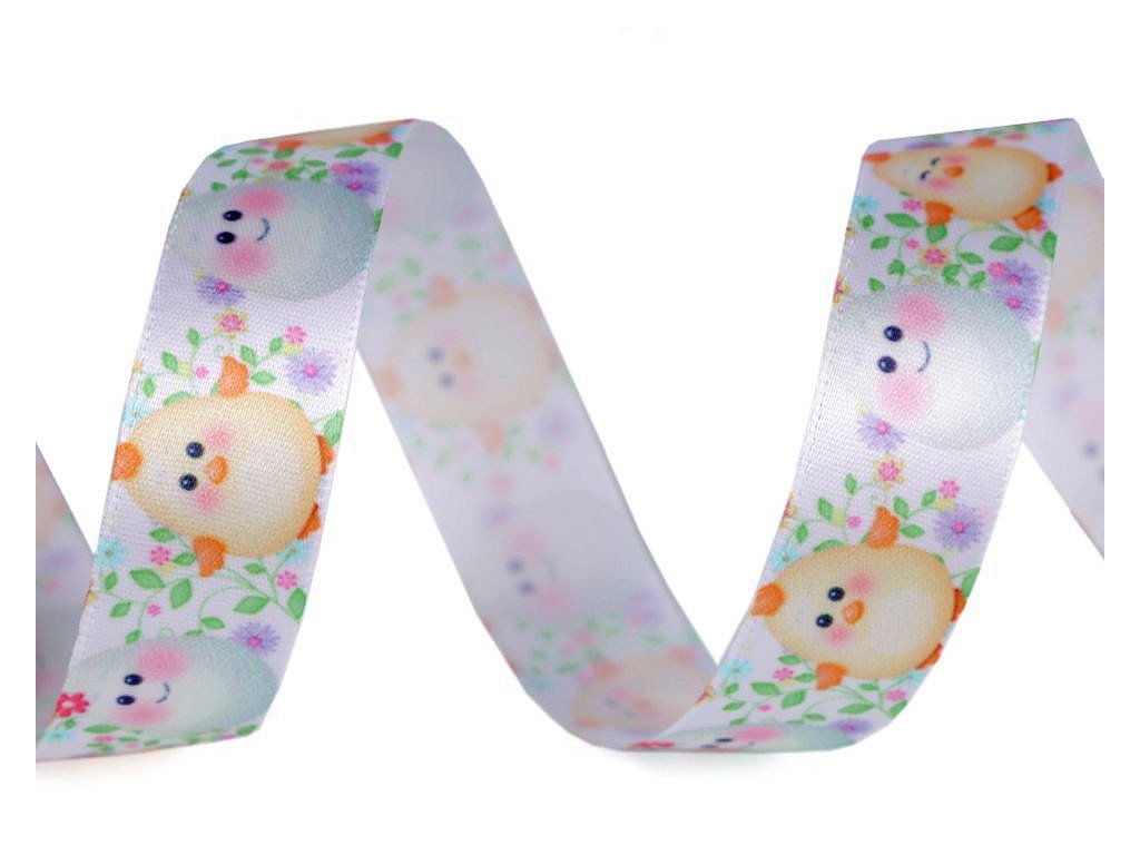 Dekorační stuha s poutavým velikonočním potiskem. Digitální potisk je jednostranný. Použití: stuha je určená k dekoraci velikonočních vazeb, k oživení květináčů, ubrusů a dalších velikonočních ozdob. Je vhodná i na ozdobné balení dárků, můžete ji koledníkům uvázat na pomlázku.- Šíře: č. 1 - 4: 25 mm