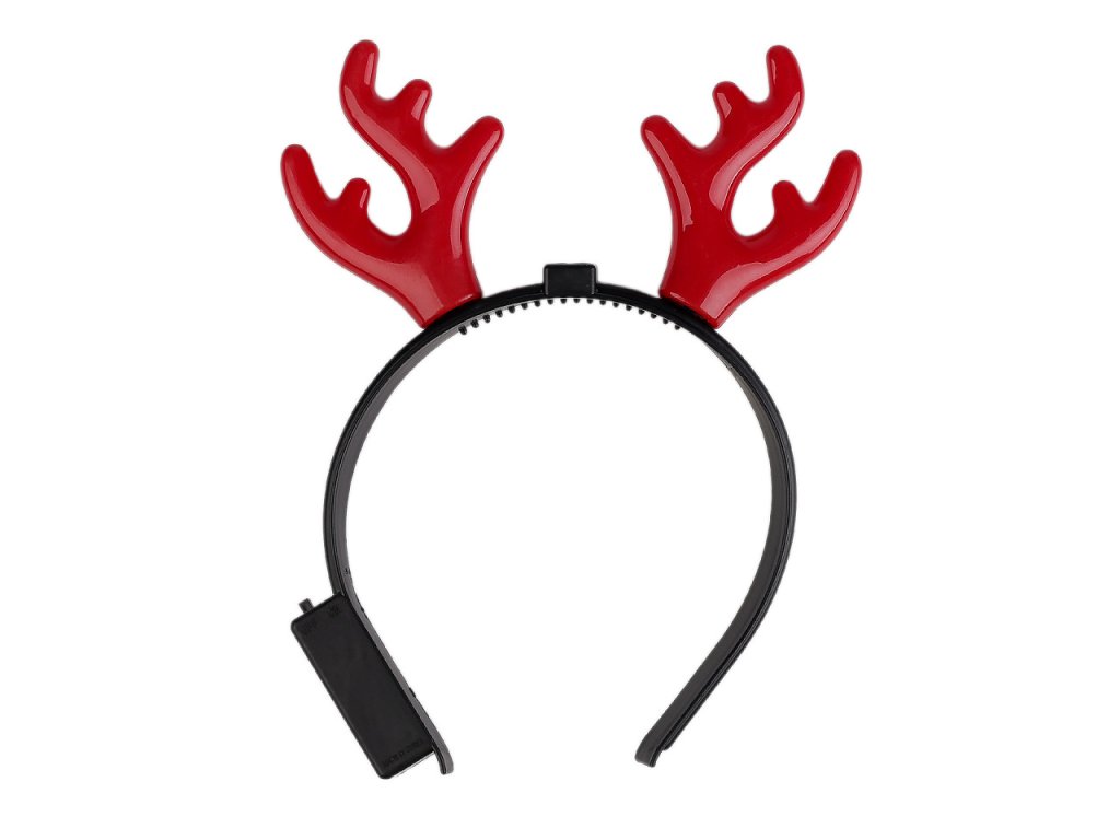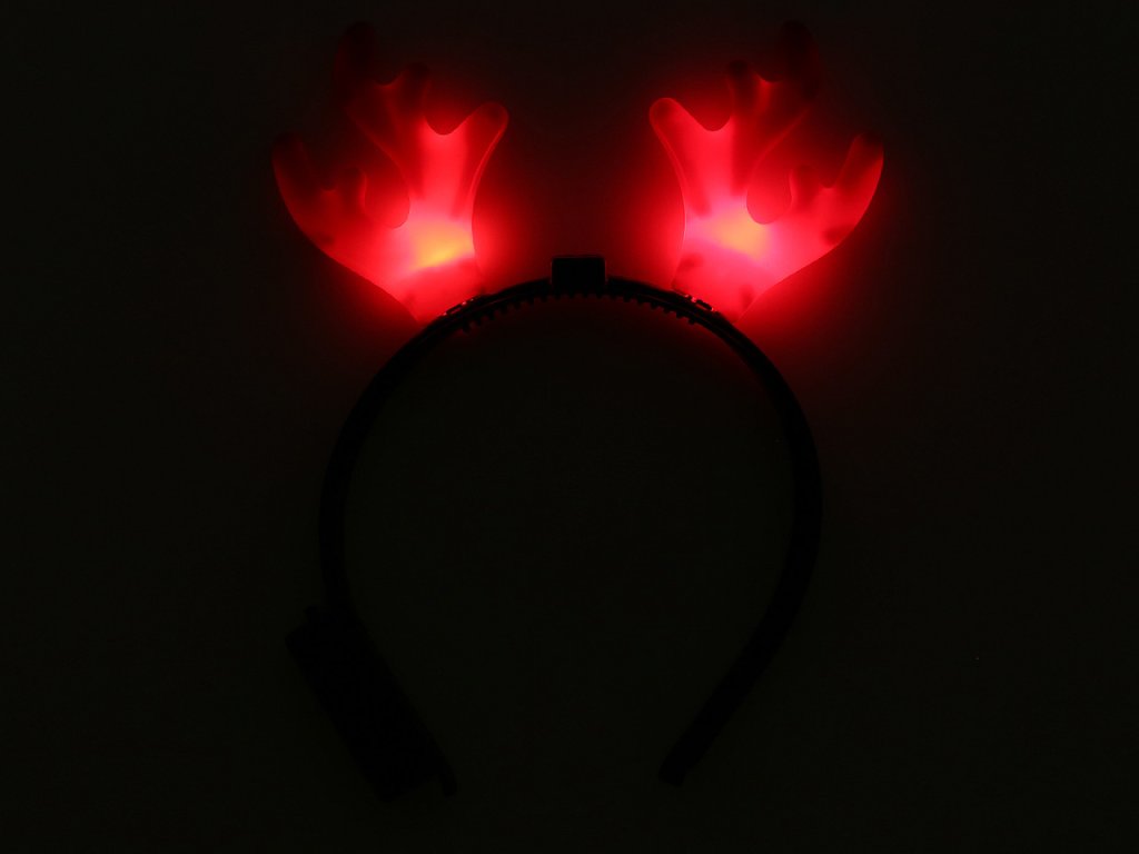 Čelenka s blikajícími sobími parůžky je vhodná na vánoční párty, večírky, rodinná setkání nebo karnevaly. Parůžky jsou umístěné na čelence, která má zoubky, a ve vlasech dobře drží. Baterie (3x LR44) jsou součástí výrobku. Délka parůžků je cca 8 cm.- Obvod čelenky: 34 cm
