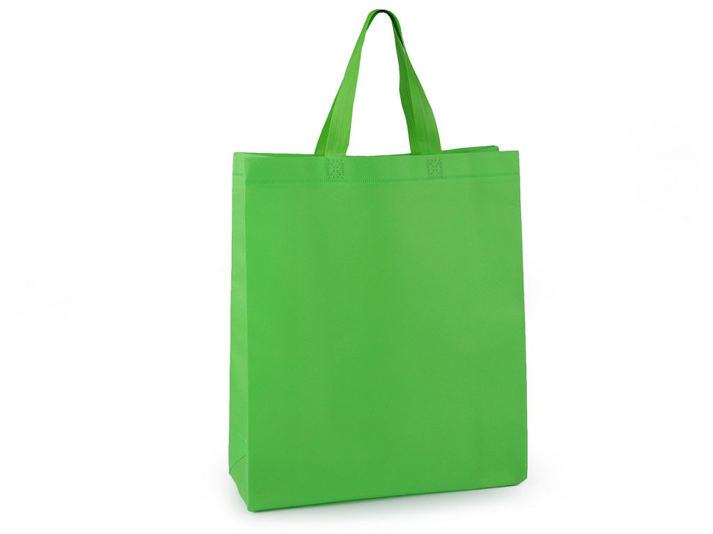 Do velké tašky z netkané textilie naskládáte plno věcí. Má dvě ucha, skvěle se složí třeba do kabelky. Díky opakovanému používání je šetrná k životnímu prostředí, stále častěji nahrazuje igelitové tašky. Hodí se k reklamním účelům. Není určená na těžké nákupy.- Rozměry (ŠxVxH): 34 x 40 x 12 cm