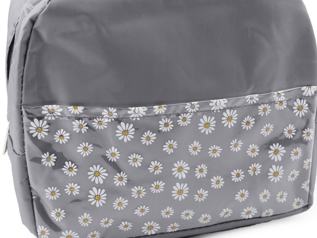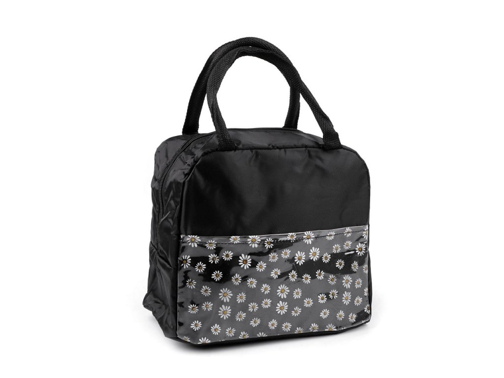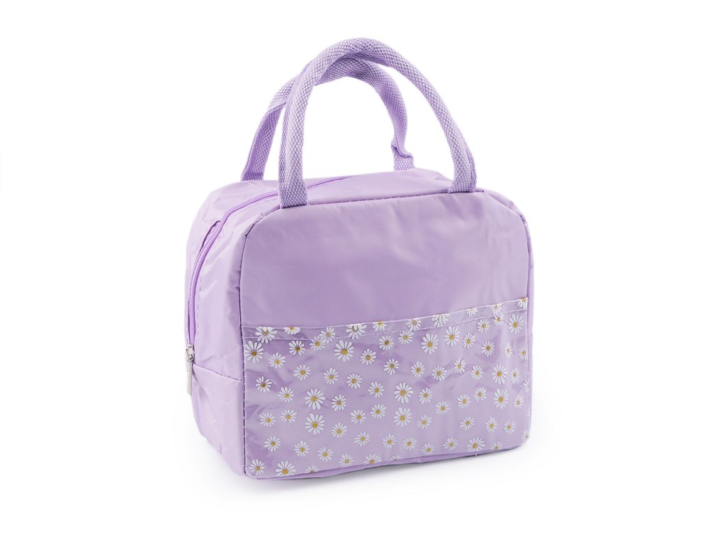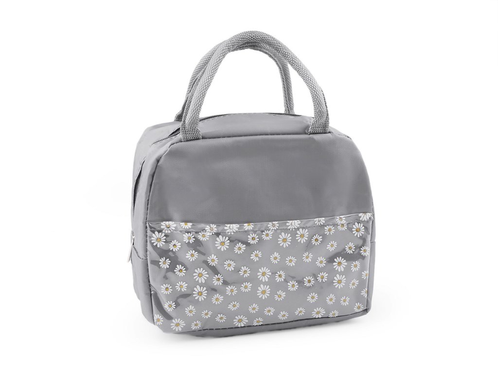 Malá skládací termotaška je skvělým společníkem na výlety, do školy i do práce. Uchovává potraviny po určitou dobu při stejné teplotě. Na přední straně má transparentní plochou kapsu s potiskem květů. Ve středu jsou květy ozdobené třpytivými glitry. V hlavním úložném prostoru je izolační vrstva, která je omyvatelná. Díky širokému dnu má dobrou stabilitu. Zapíná se na zip, nahoře má ucha na pohodlné přenášení.- Rozměry (ŠxVxH): 22 x 19 x 12 cm