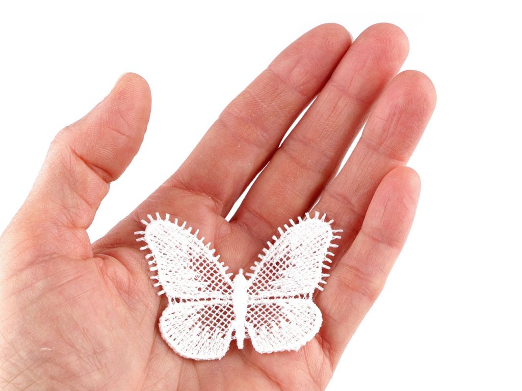 Krajkovou aplikaci motýla využijete na zdobení oděvů např. halenek, šatů, různých kloboučků, tašek apod. Hodí se i na zdobení bytových dekorací jako jsou ubrusy, prostírání, povlaky na polštáře a další. Použít ji můžete i ve scrapbookingu při vytváření různých přáníček, alb, deníků atd.- Rozměry: č. 2: 4 x 5,2 cm