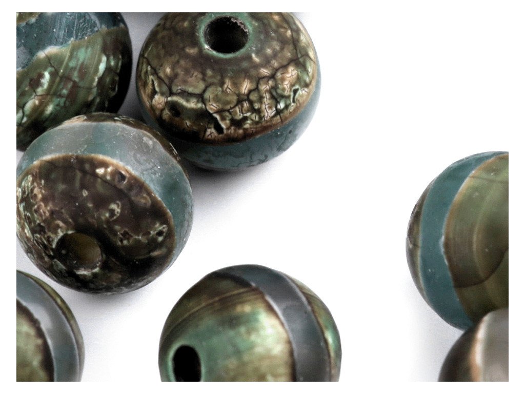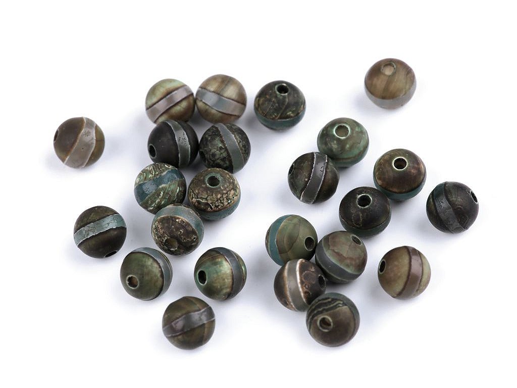 Minerální korálky z tibetského achátu jsou oblíbené především šperkaři pro svou jedinečnou kresbu a průsvity. Svou velikostí jsou ideální na výrobu Buddhových náramků. Jsou oblíbené na techniku drátování, v kombinaci s drahými kovy, ale i s obyčejnými drátky. Skvěle vypadají i na jednoduchých návlekových šňůrách, které zajímavě ozvláštní.- Průměr: 8 mm
